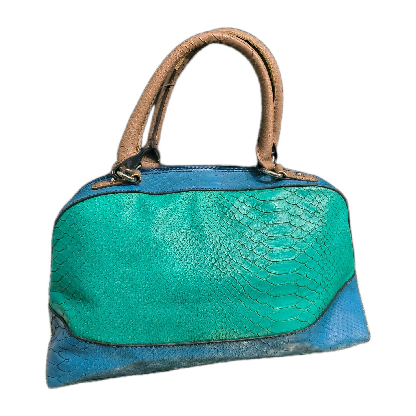 Vintage Y2K GUESS Monogram Satchel Bag /Croc Trim Multi Color Teal Tan Patchwork