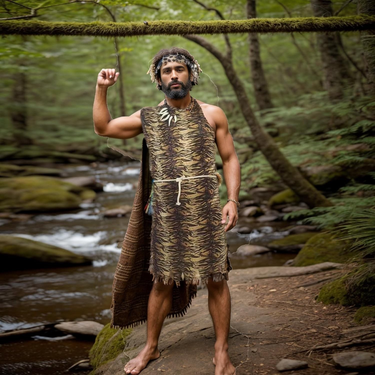 Halloween Caveman Costume for Men Women - Includes Dress, Necklace ...