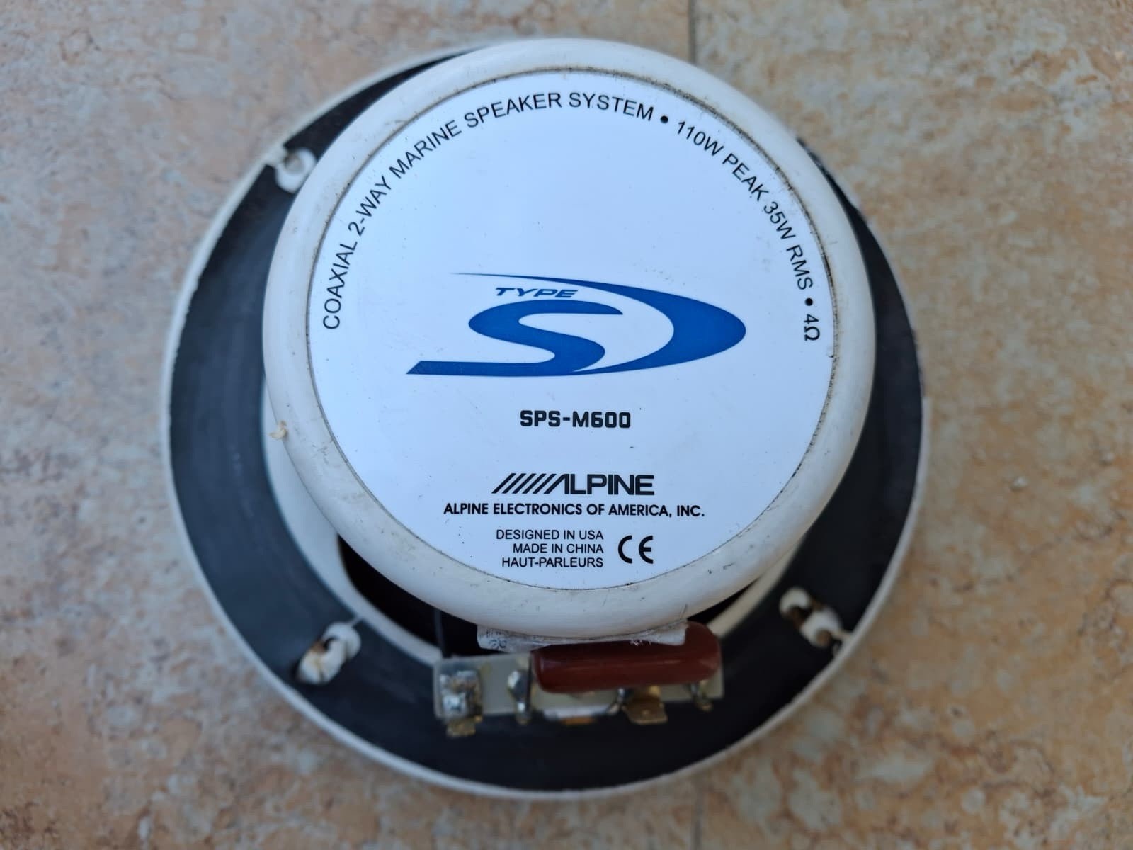 Alpine SPS-600. Used coaxial 2-way marine speaker, tested, see photos for