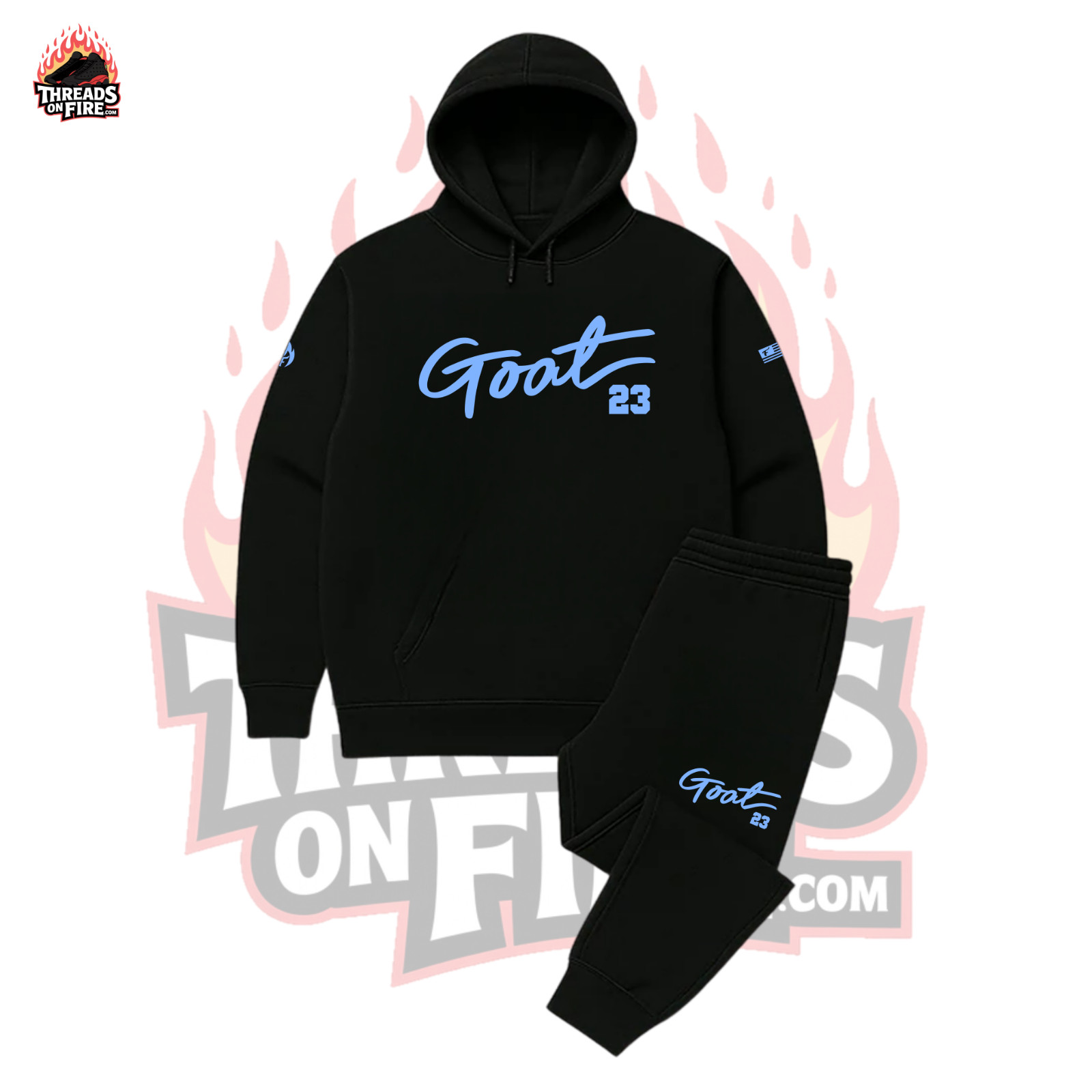 Men's Black Hoodie Joggers Sweatsuit To Match Air Jordan 1 True Blue Cement Grey