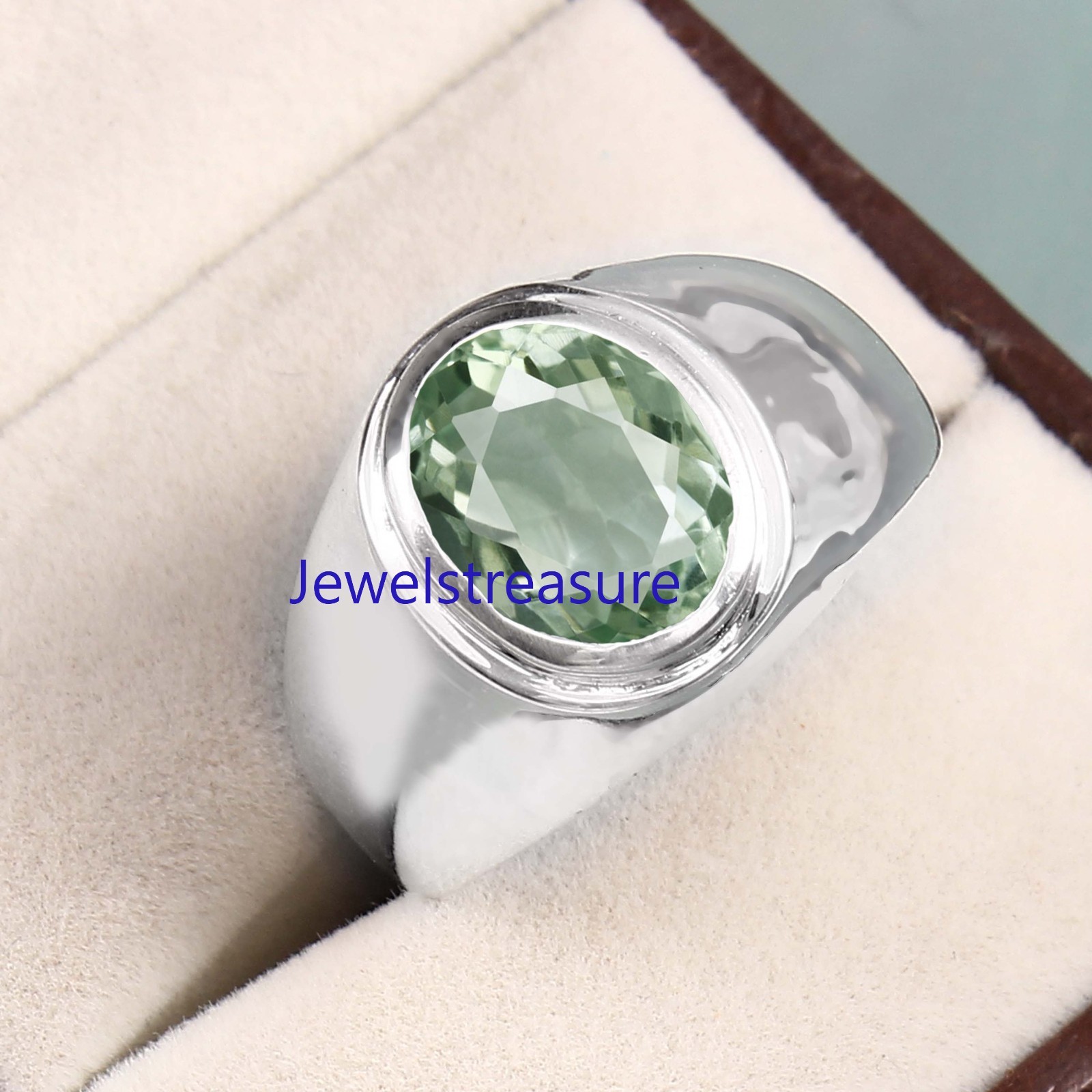 как выглядит Natural Green Amethyst Gemstone with 925 Sterling silver Ring for Men