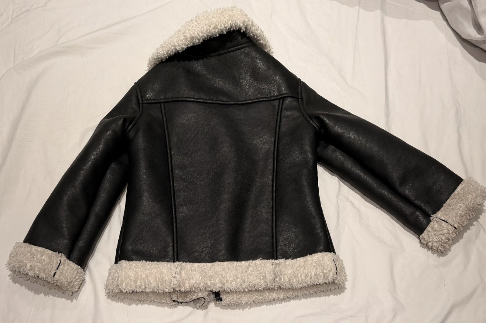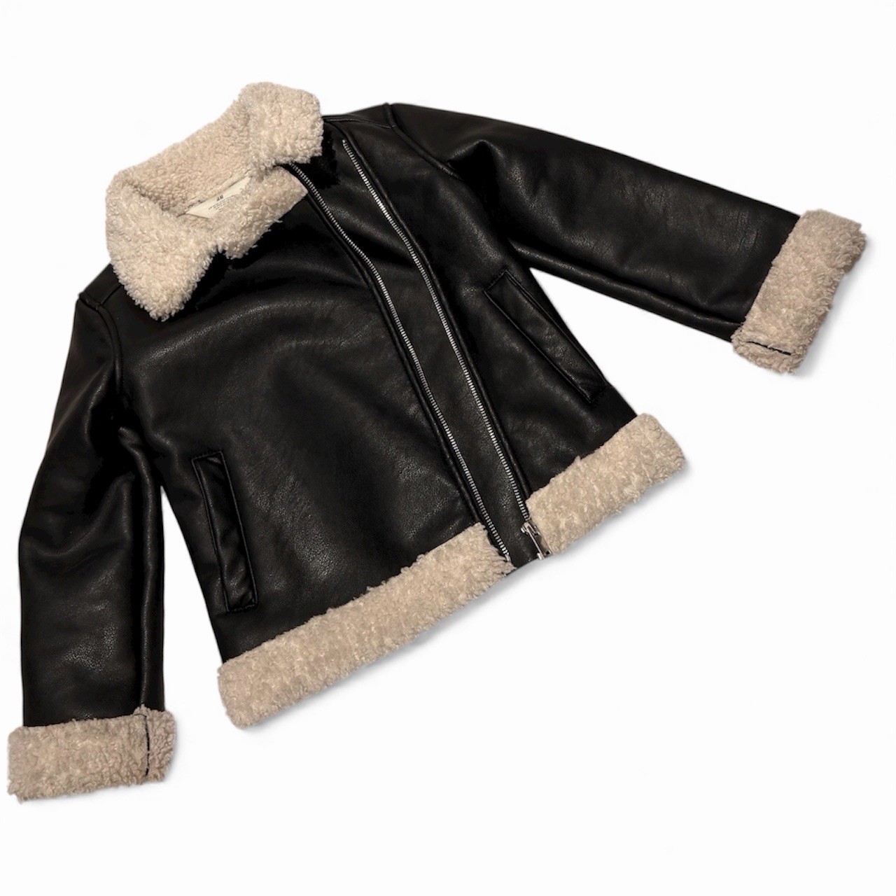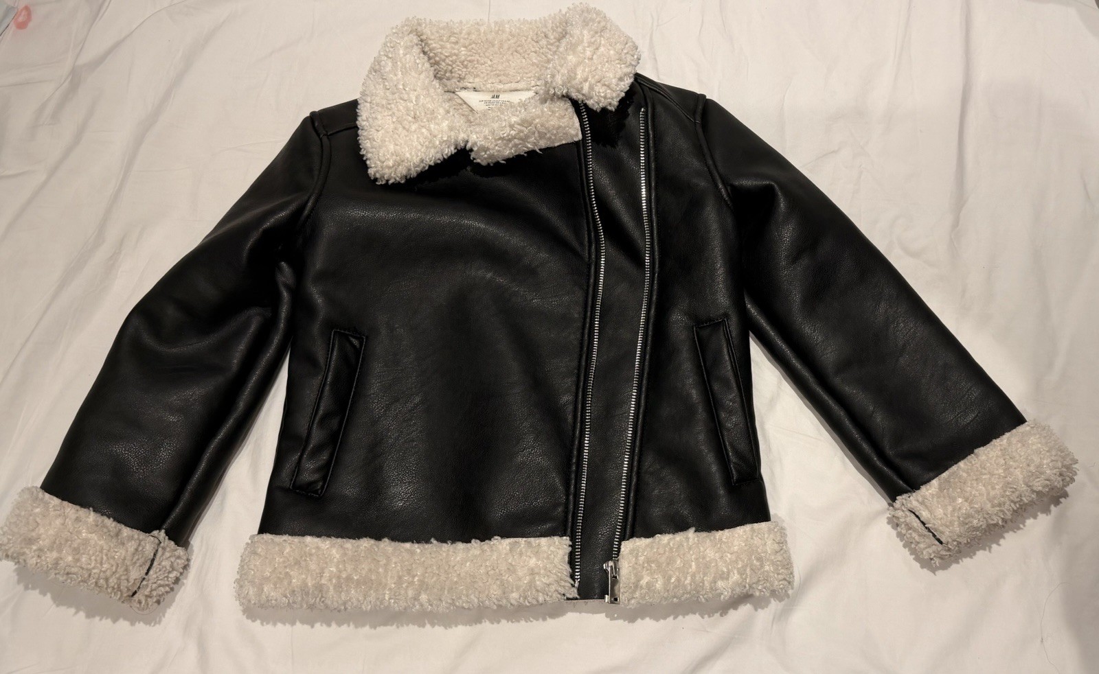 как выглядит VGUC H M Faux Leather Jacket, Black With Faux Wool Trim, Kids Size 6X-7, Unisex фото