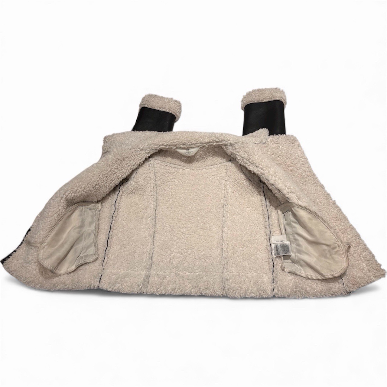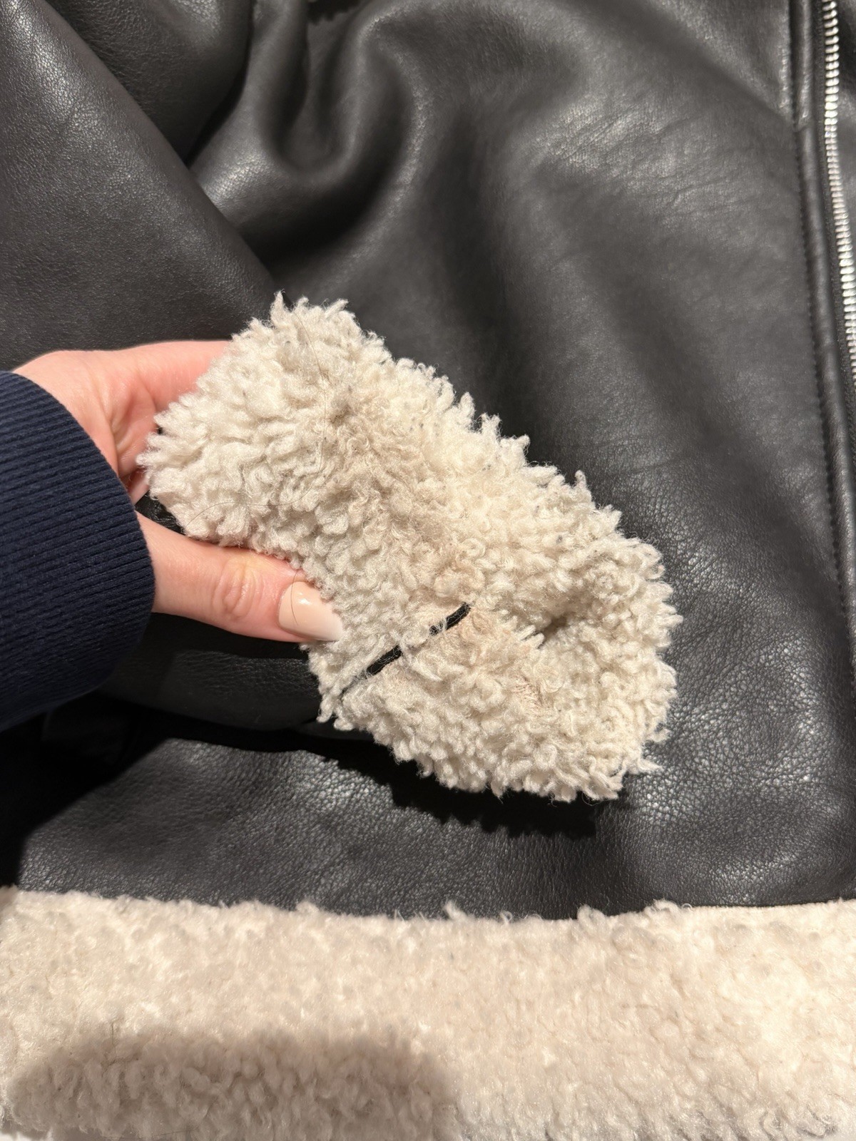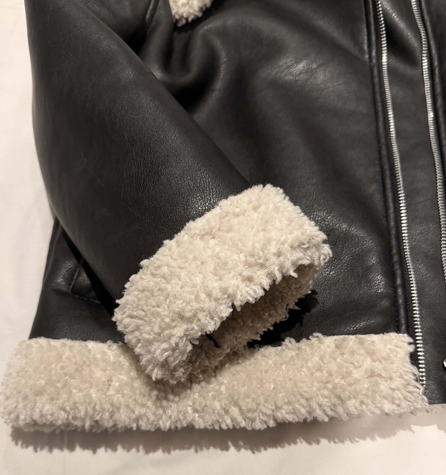 как выглядит VGUC H M Faux Leather Jacket, Black With Faux Wool Trim, Kids Size 6X-7, Unisex фото