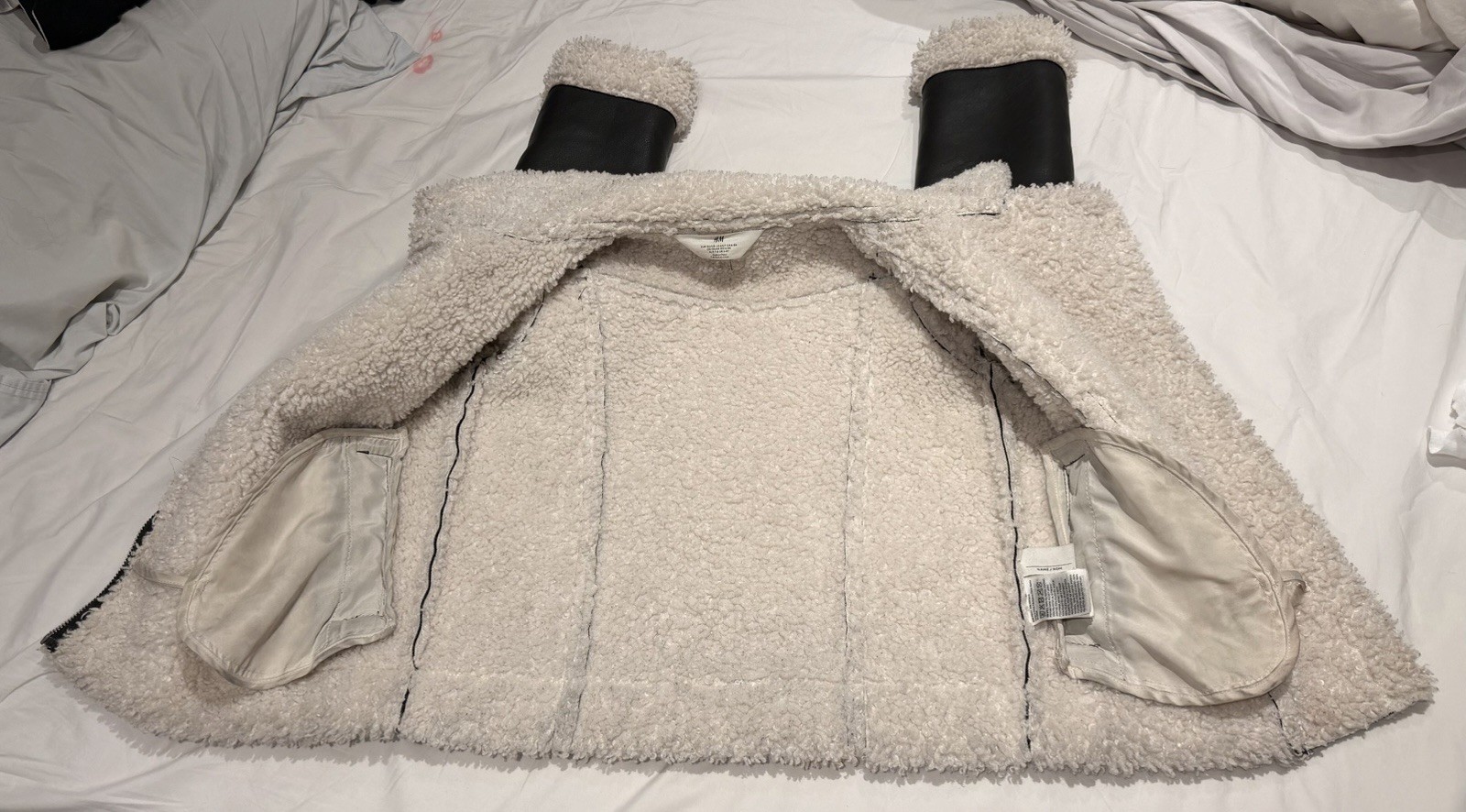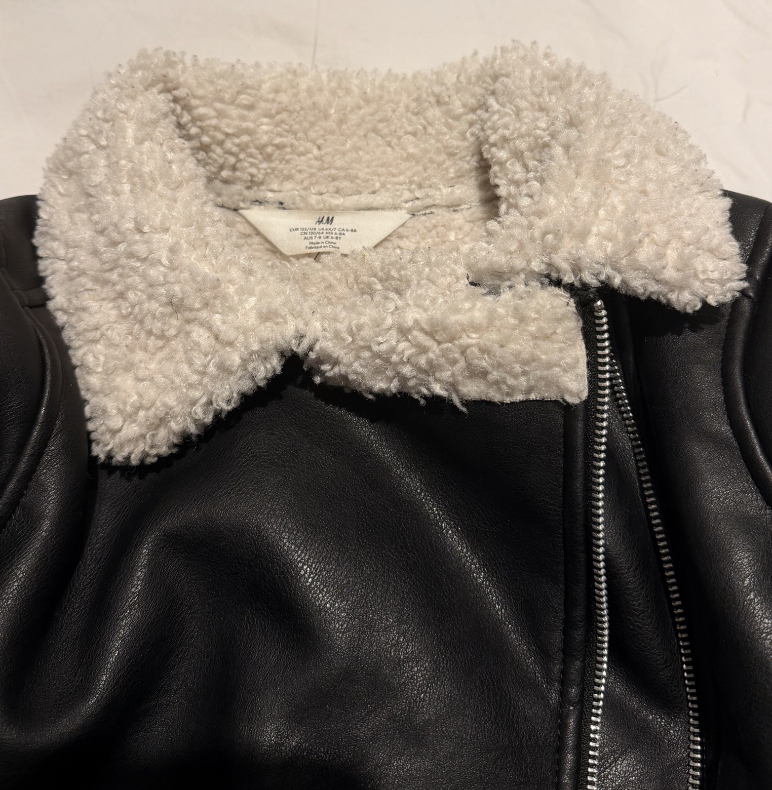 VGUC H M Faux Leather Jacket, Black With Faux Wool Trim, Kids Size 6X-7, Unisex