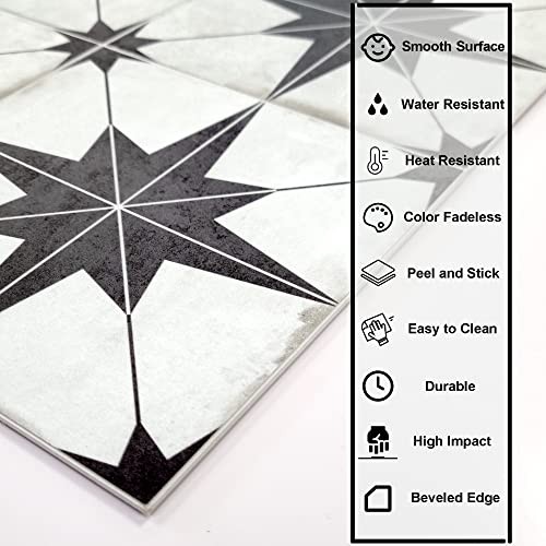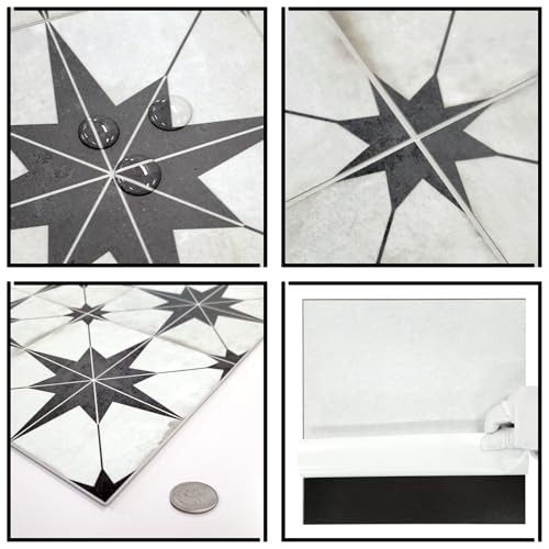 Peel and Stick Encaustic Backsplash, Black Patterned Stick on Tile, 10 Star