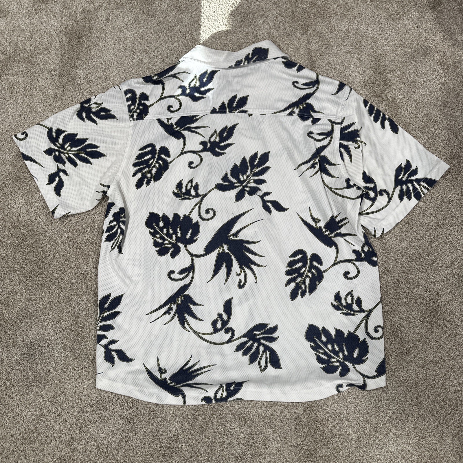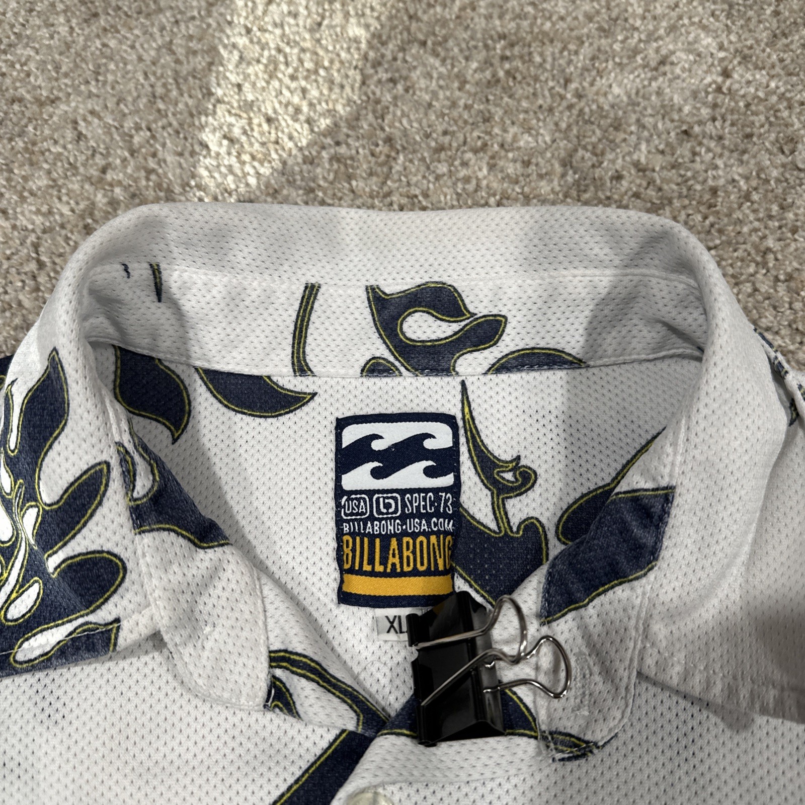 Billabong Spec 73 Hawaii Palm Leafs Floral Short Sleve Shirt SZ XL White Blue