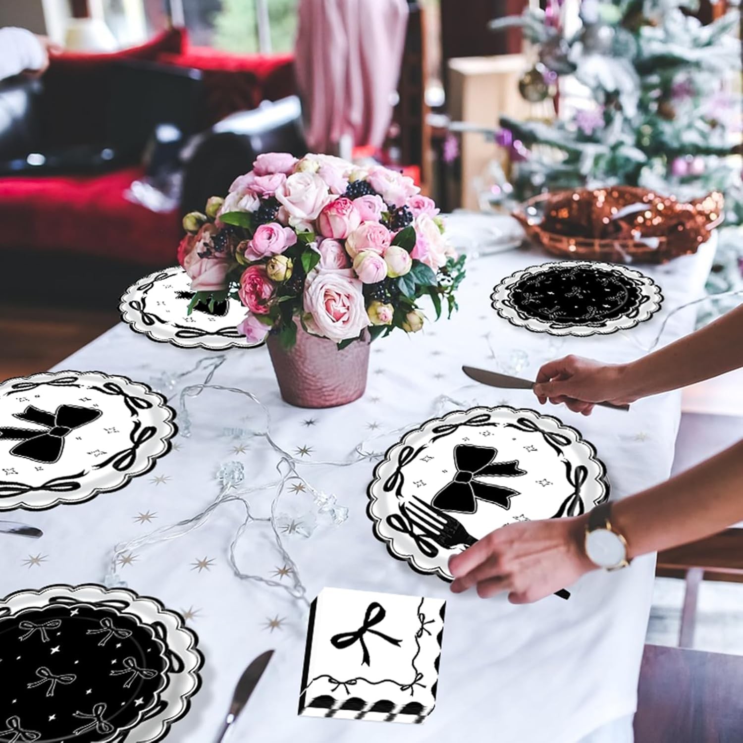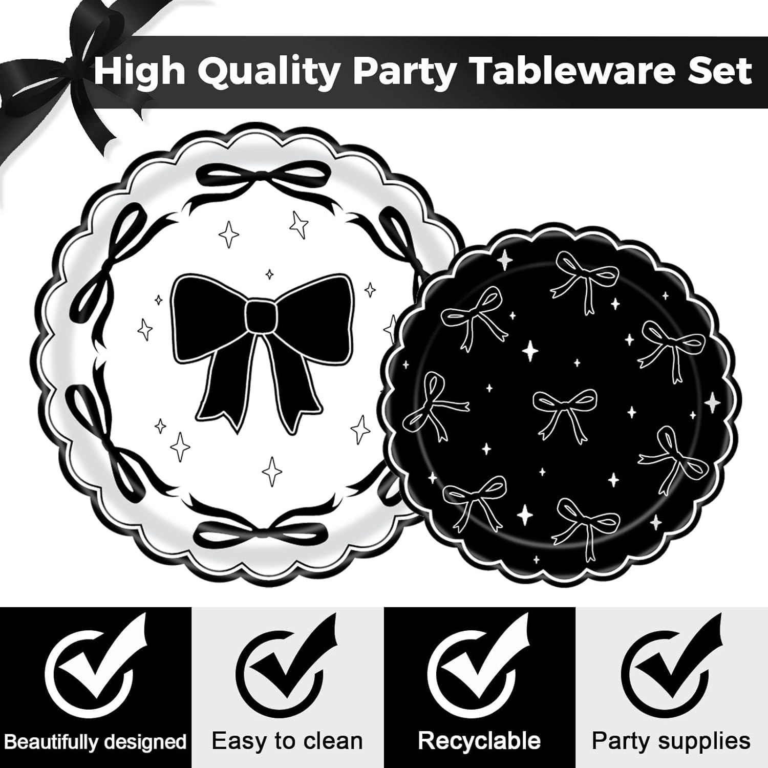 Complete Black Bow Birthday Decoration Set for Special Occasions