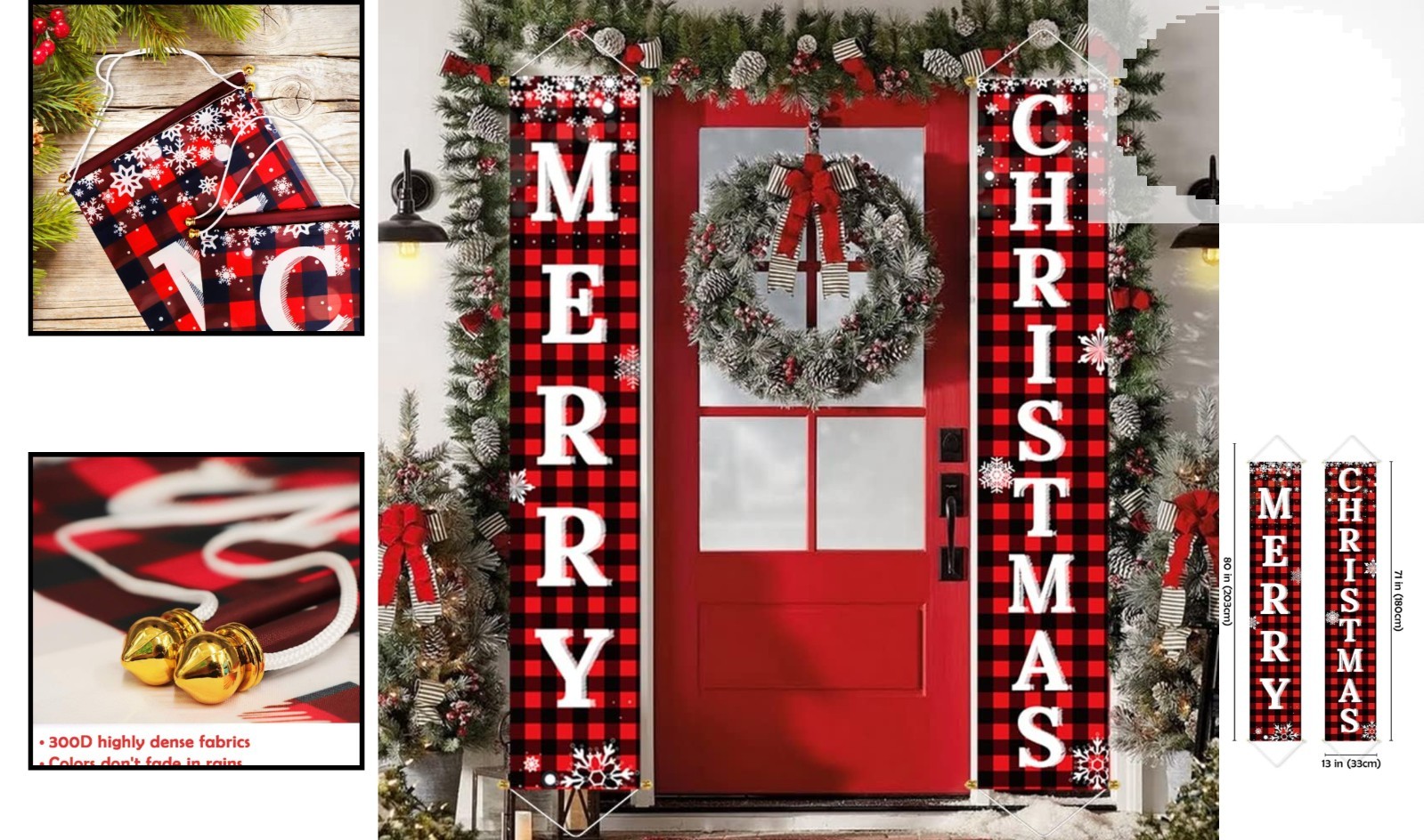 Christmas Decorations Outdoor Yard Front Porch Sign Set, Red Black Door Banner