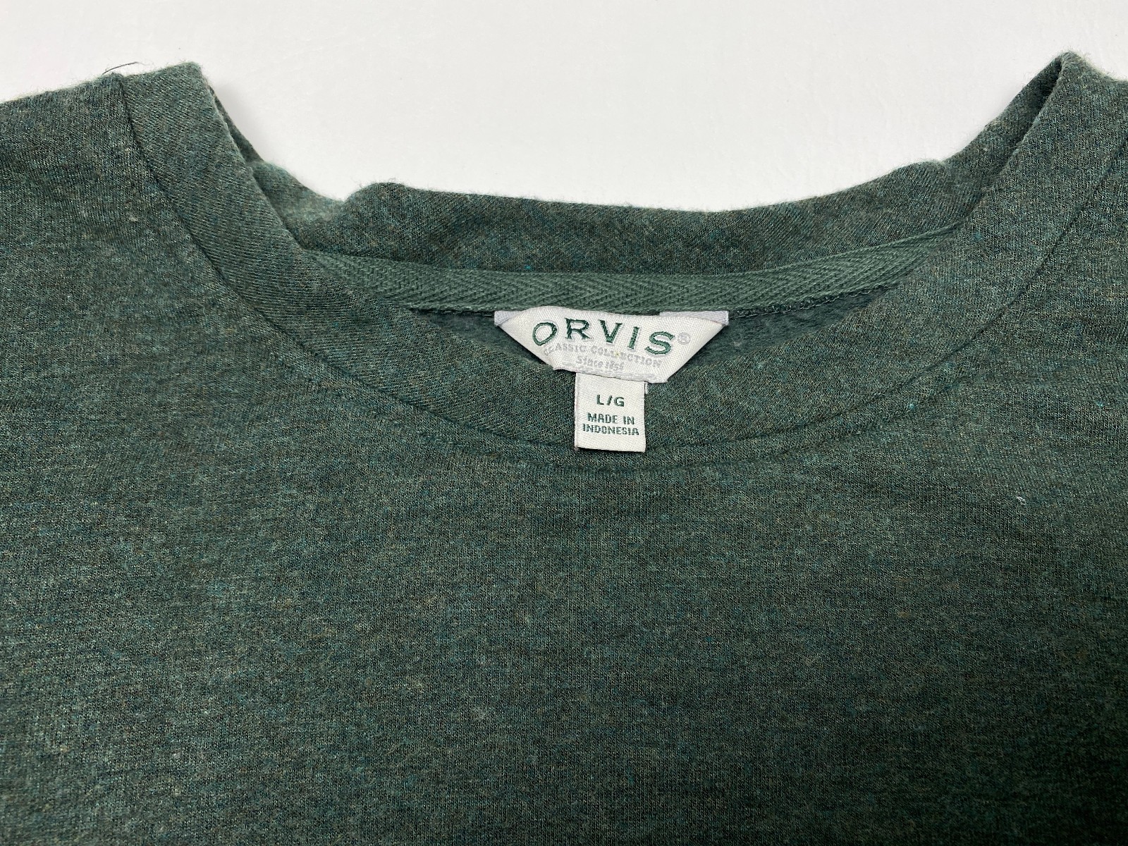 как выглядит Orvis Mens Sweatshirt Large L Green Pullover Crew Long Sleeve Fleece Forest 7749 фото