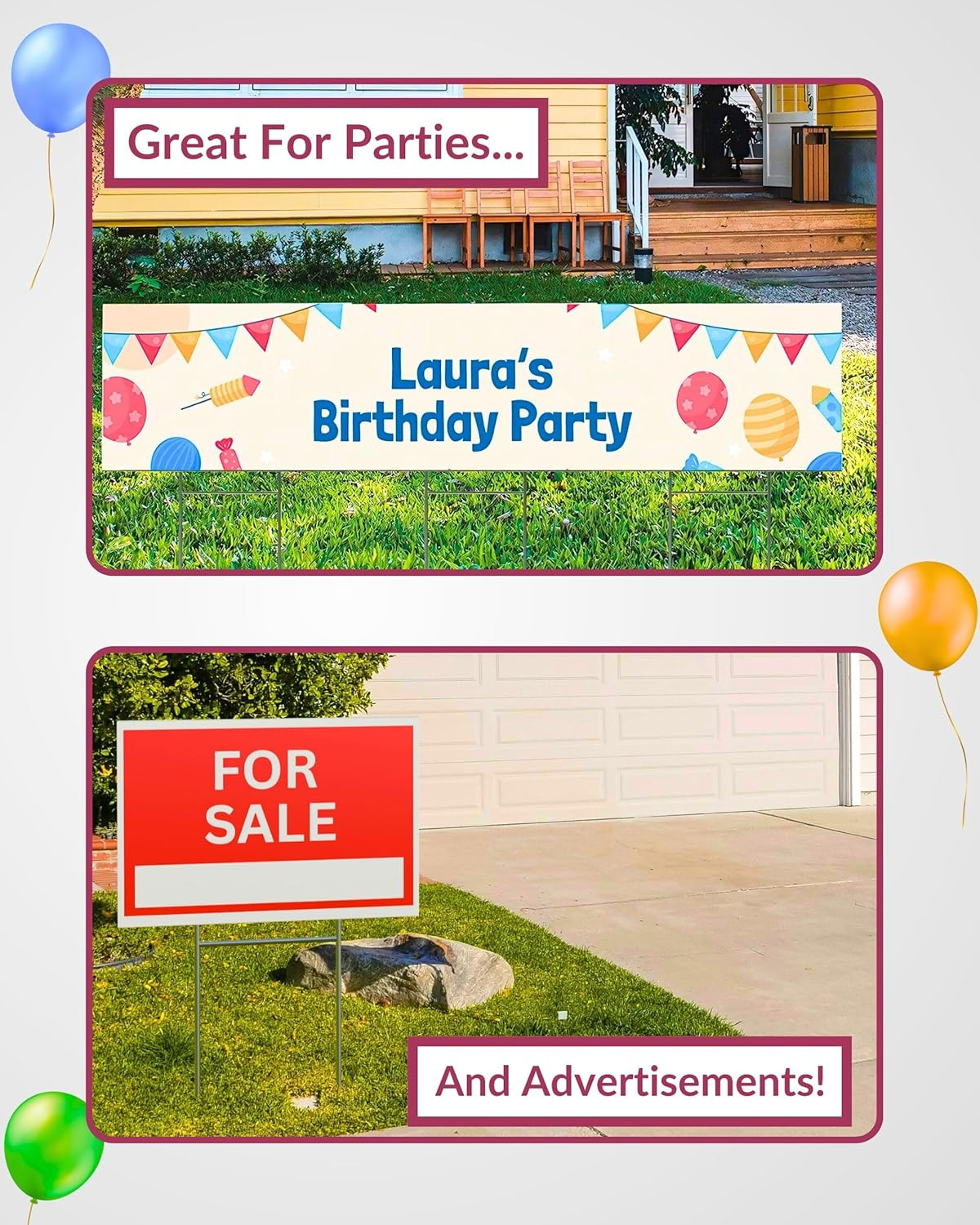 4 Pack 18 x 12 White Blank Yard Signs with Metal Stakes, Waterproof Corrugate...
