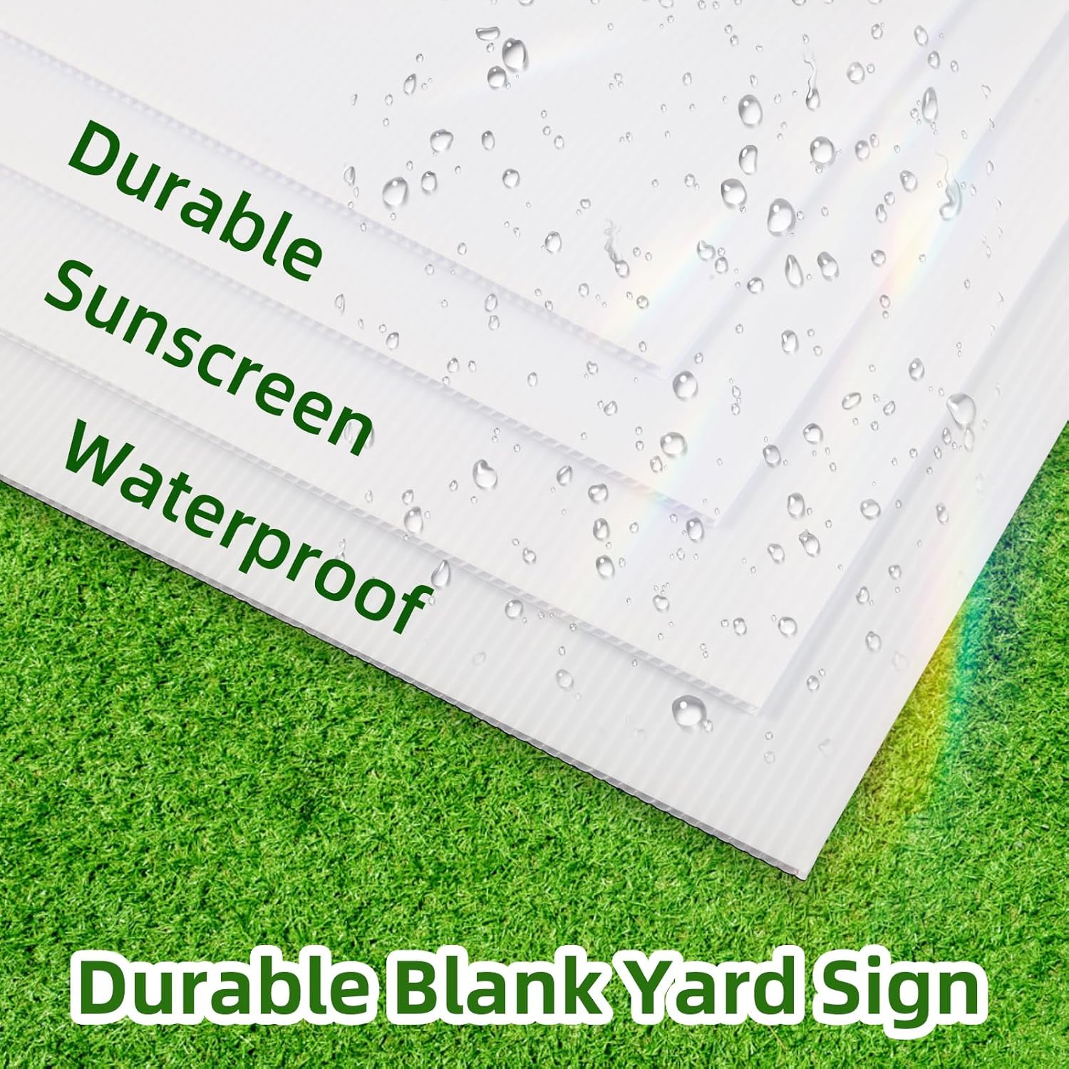 4 Pack Blank Yard Signs 17 x 12 in with Metal Stakes, White Plastic Yard Lawn...