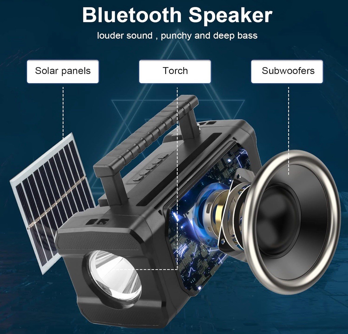 Portable Solar Emergency Speaker, Bluetooth And Flashlight With Radio