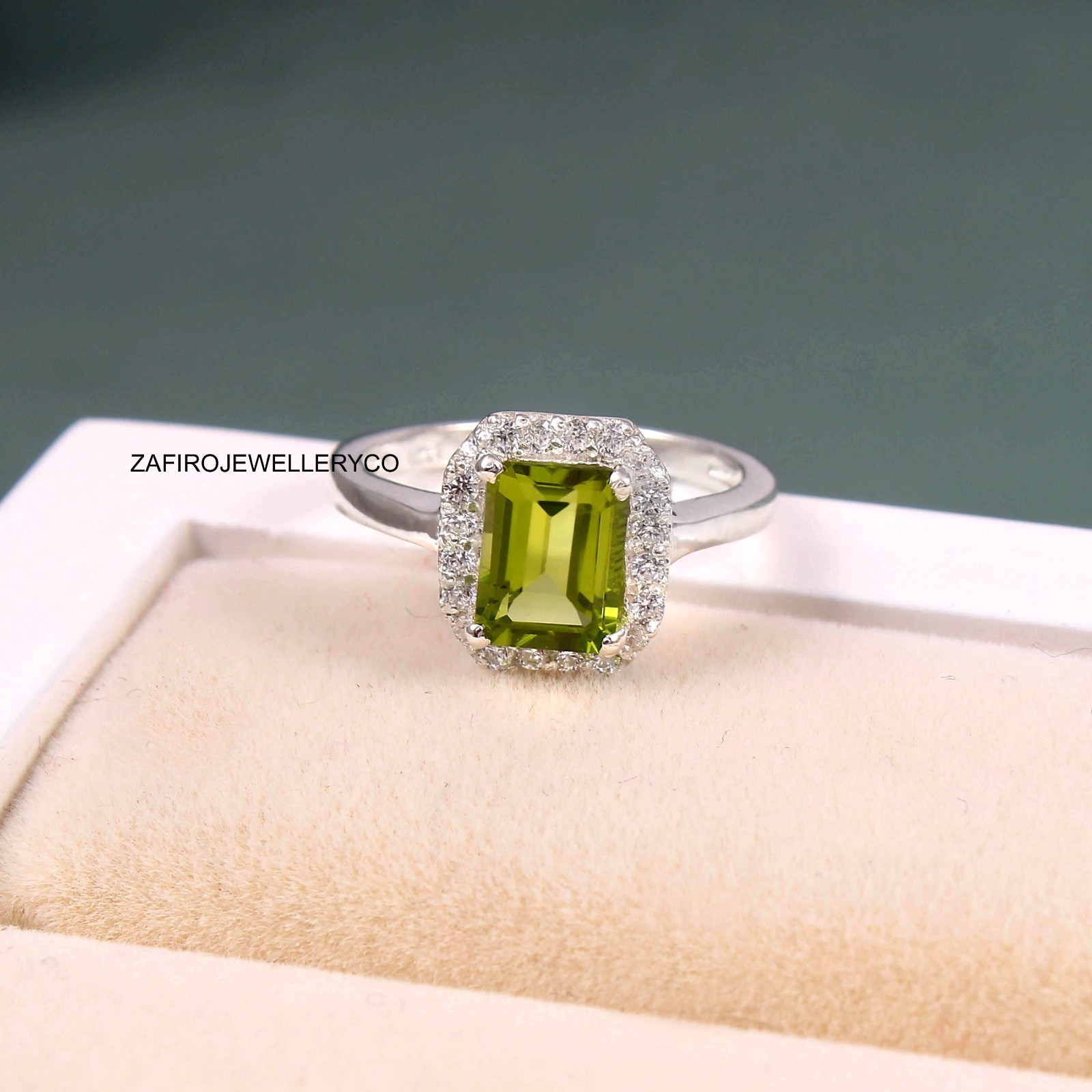 как выглядит Natural Peridot Ring, August Birthstone, Promise Ring, 925 Sterling Silver фото
