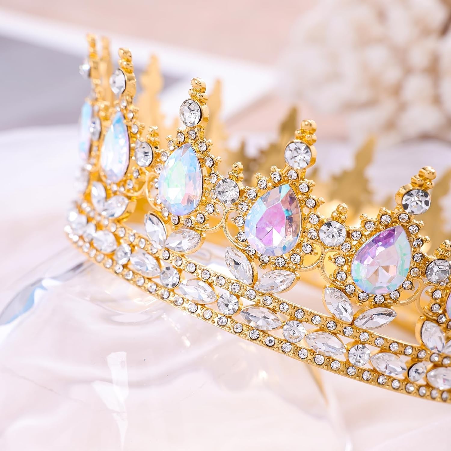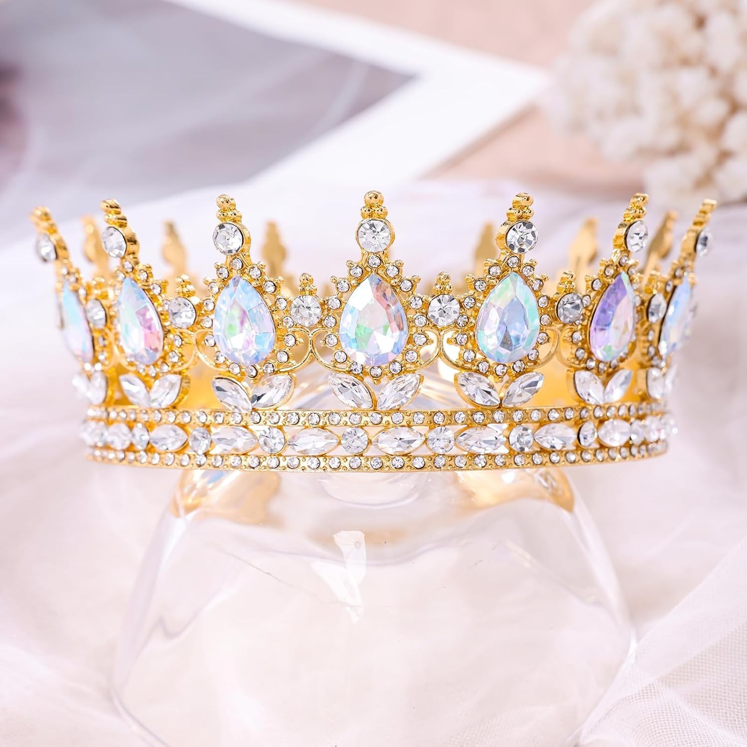 Gold Queen Crown for Women Crystal Tiara Girl Rhinestone Wedding