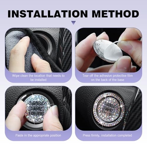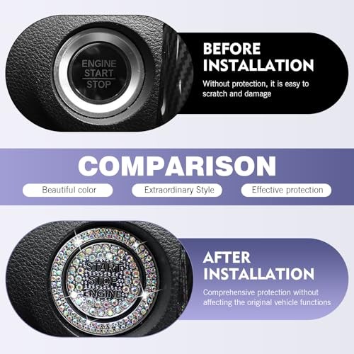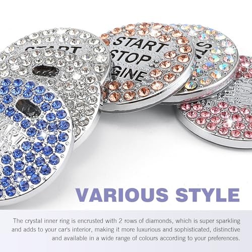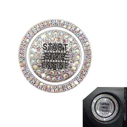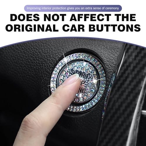 MLY 2 PCS Bling Rhinestone Start Button Cover, Push to Start Multicolored