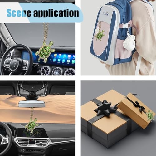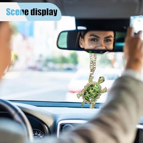 Crystal Diamond Turtle Car Pendant, Bling Funny Turtle Rear View Mirror Green