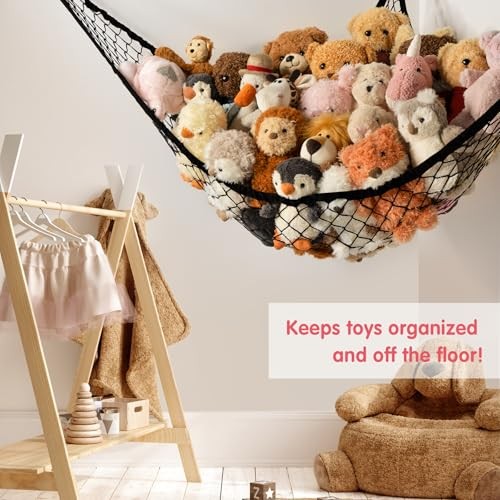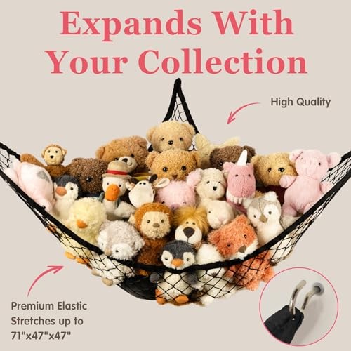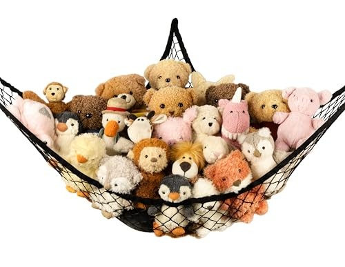 Stuffed Animal Storage Hammock Net Corner - Large Toy Hammock Net 1 Pack Black