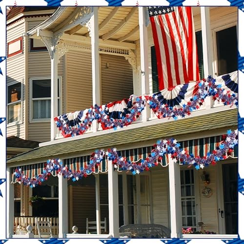 2 Pcs 80 Feet 4th of July Patriotic Tinsel Garland Decoration Red Solid Stars