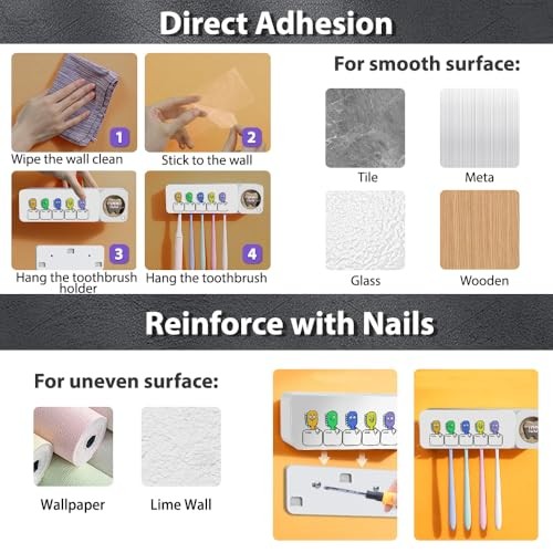 Bathroom Toothbrush Holder, Labelable with User Name, Multi-Slot Toothbrush
