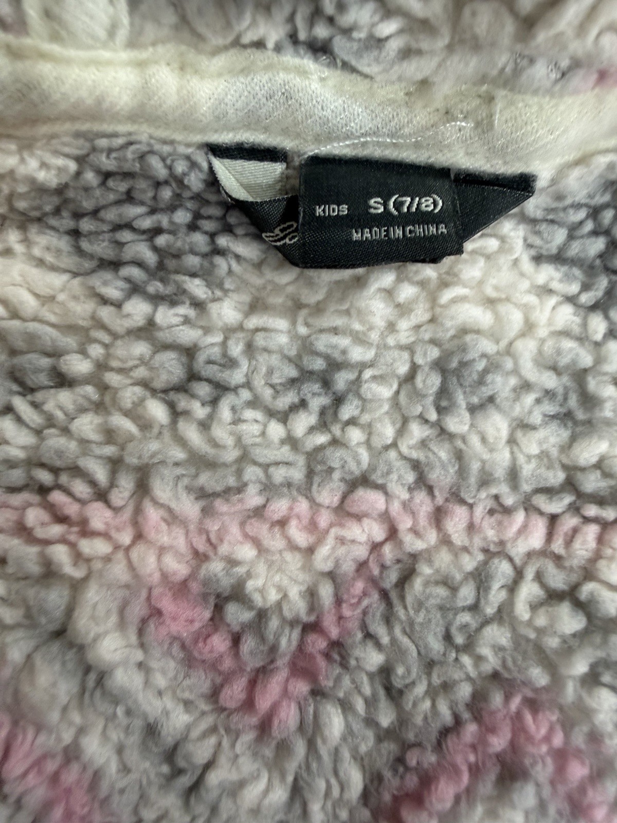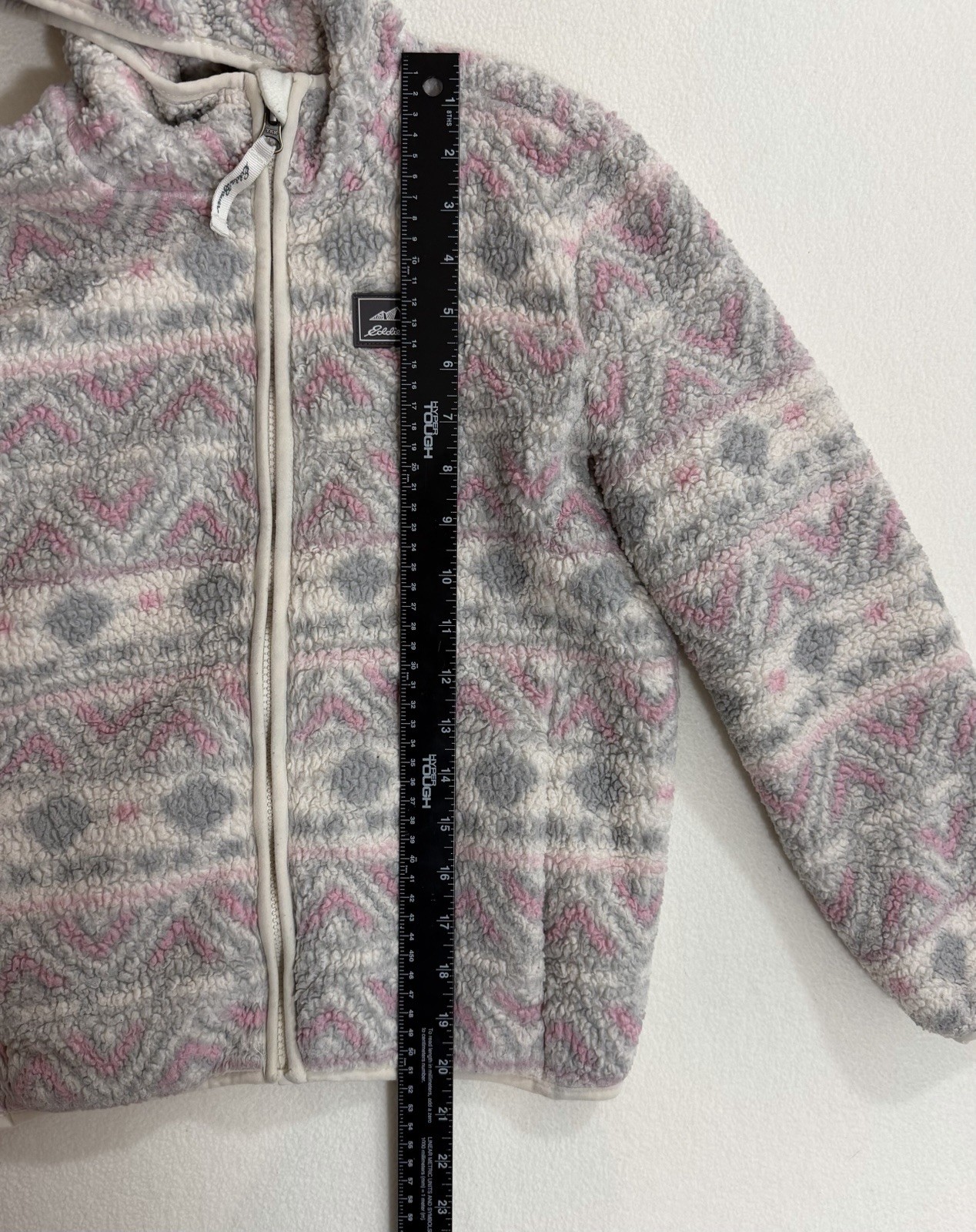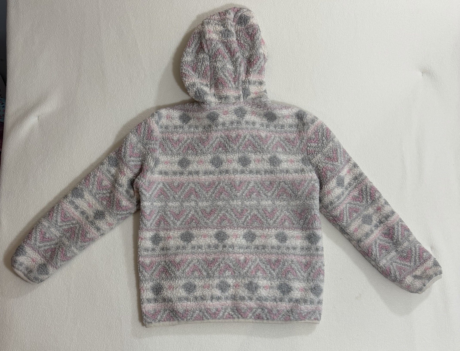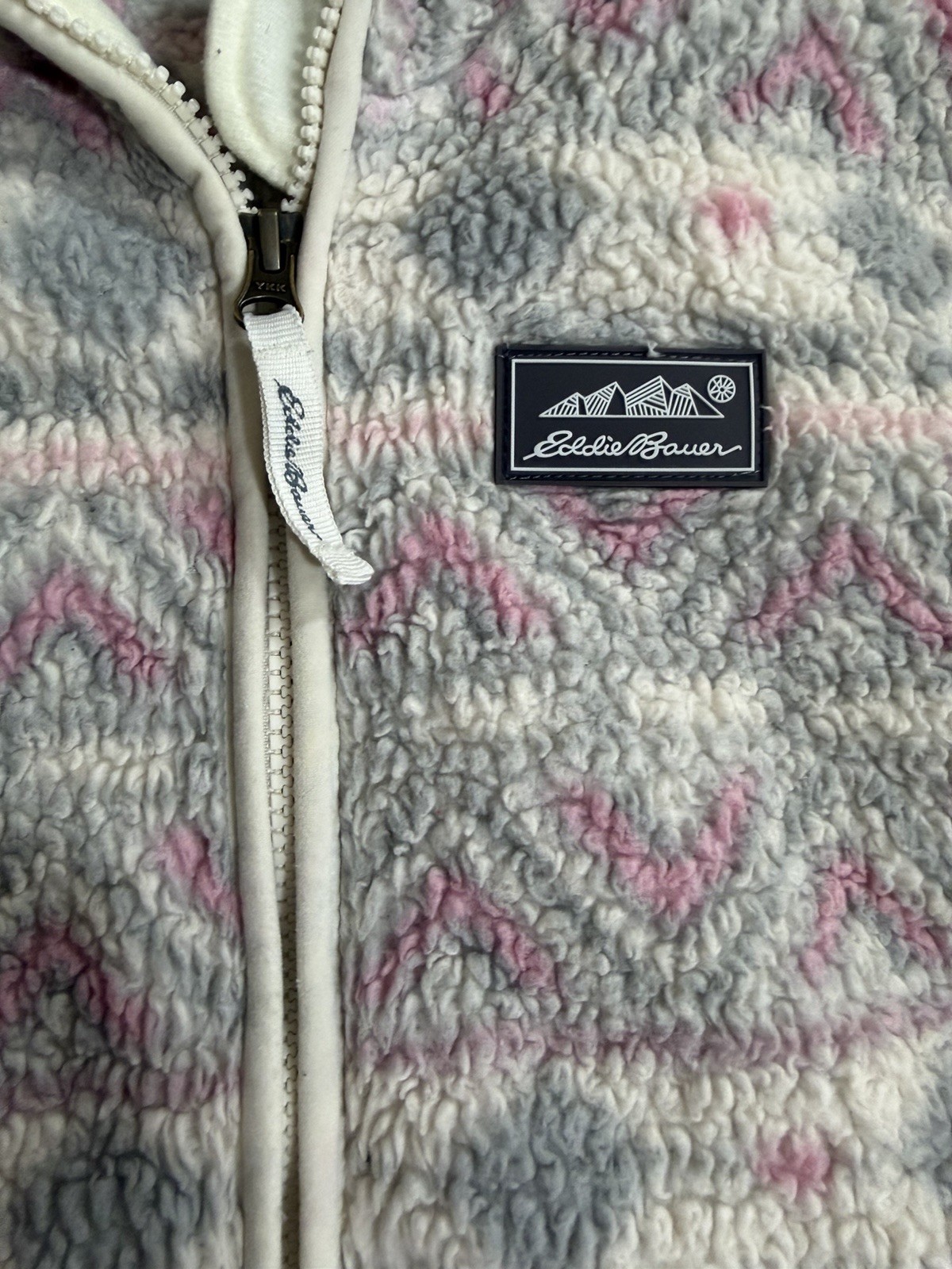 как выглядит Eddie Bauer Kids Sherpa Fleece Hoodie Jacket S 7/8 Pink Gray Full Zip Soft фото