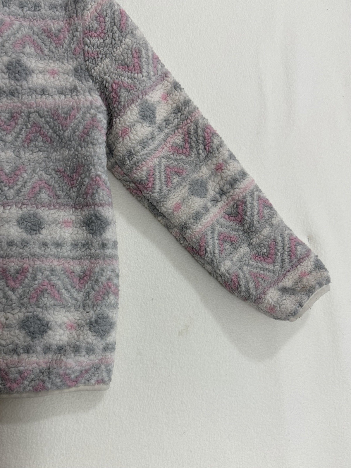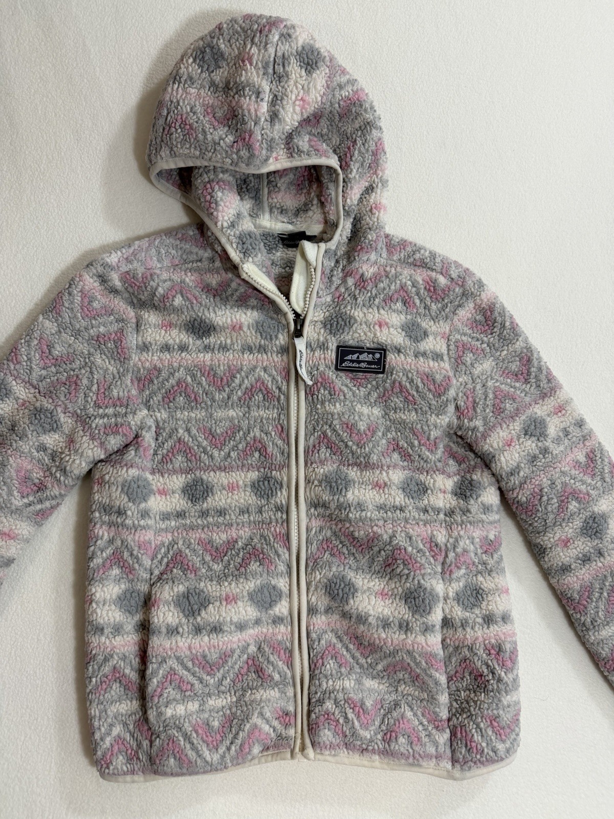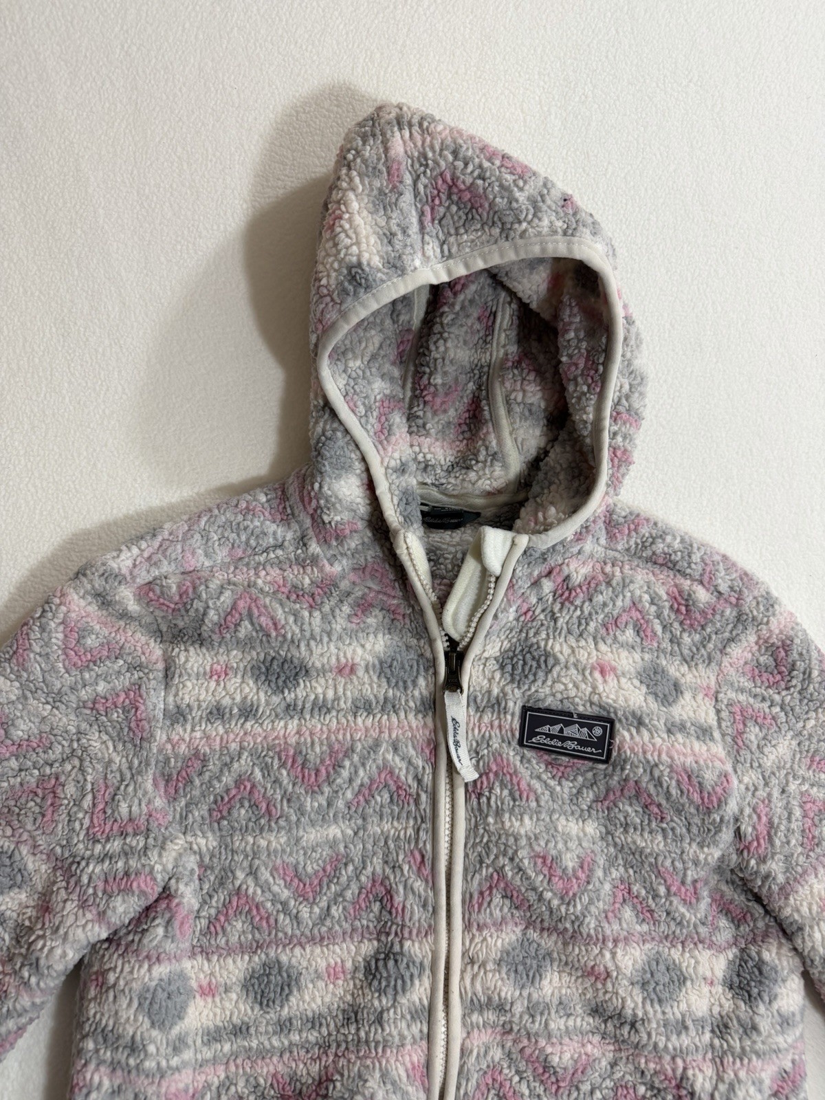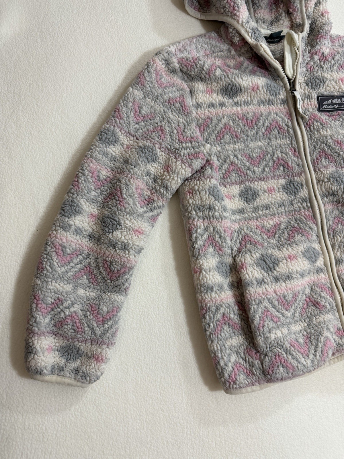 Eddie Bauer Kids Sherpa Fleece Hoodie Jacket S 7/8 Pink Gray Full Zip Soft