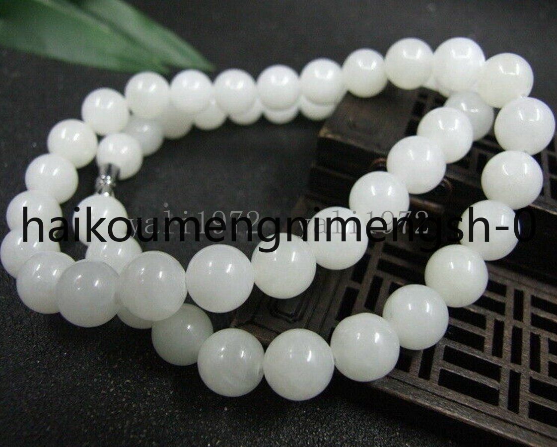 как выглядит Certificate 10mm White Hetian Jade Nephrite Jade Round Beads Necklace 18" фото