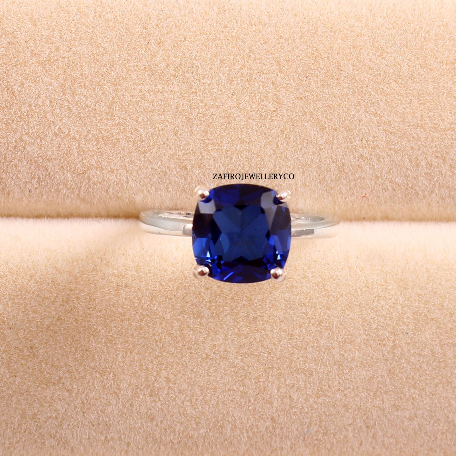Blue Sapphire Ring, Promise Ring, Engagement Ring, Lab Created Sapphire