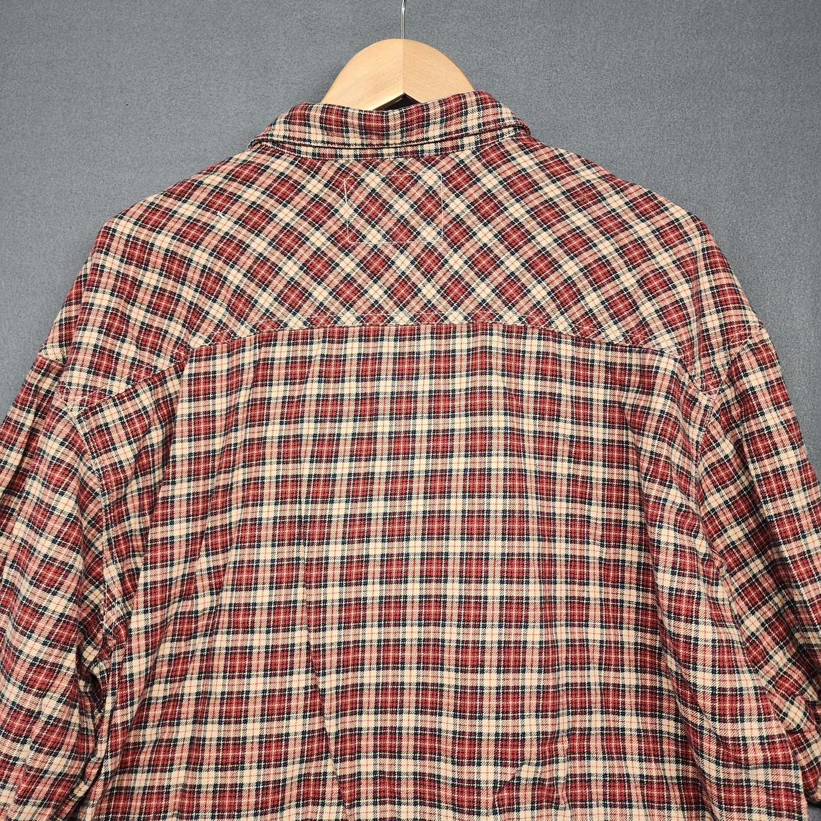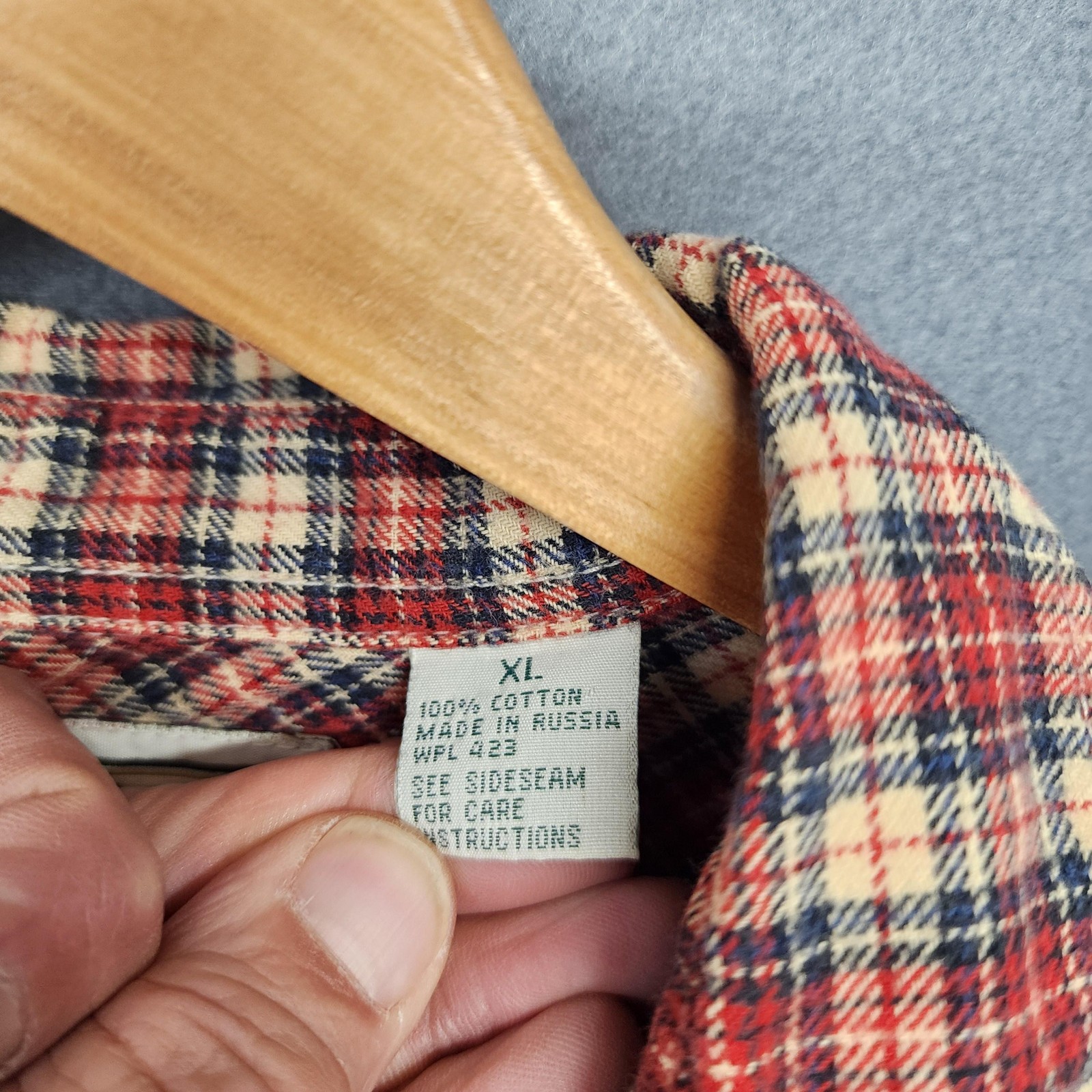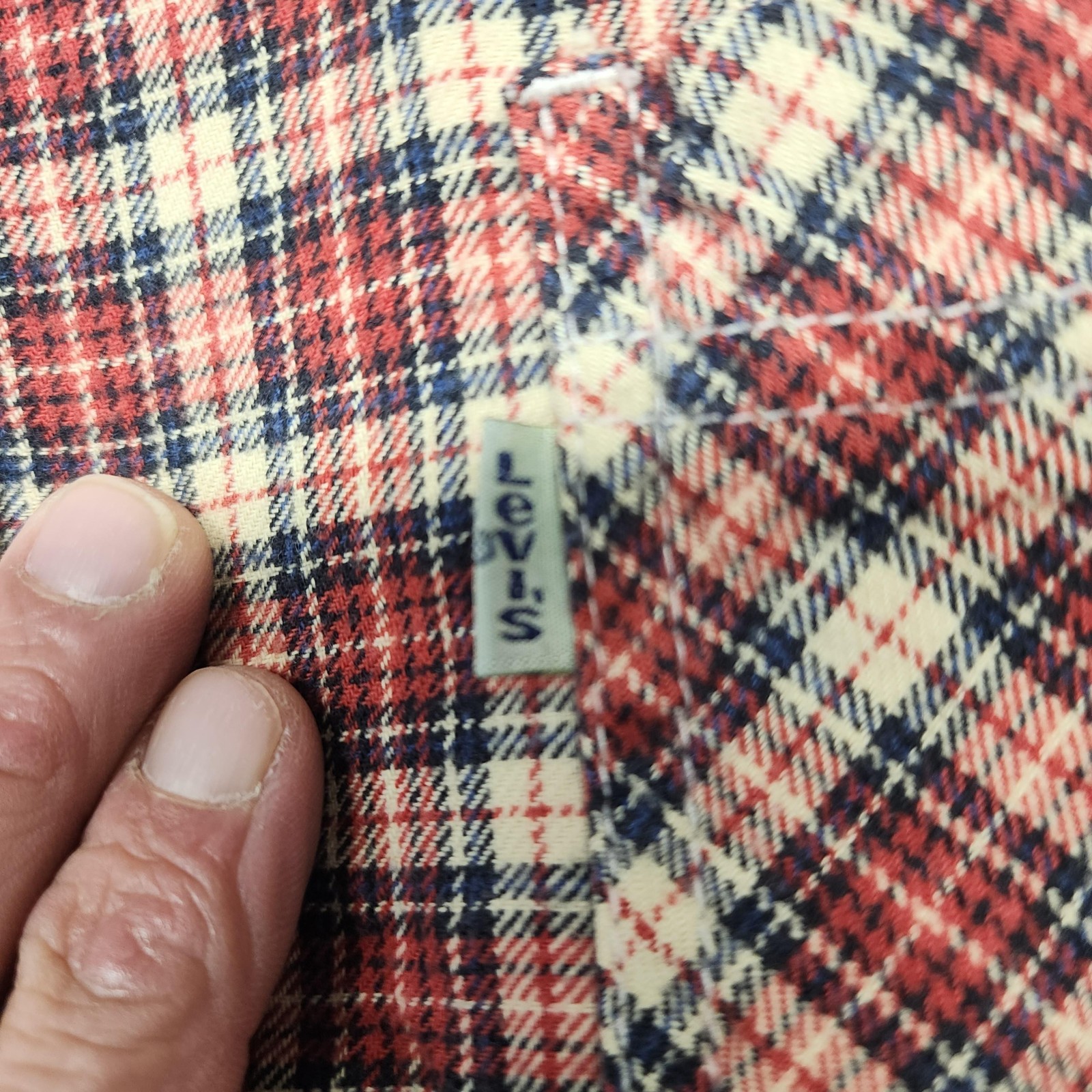 Vintage Levi's Shirt Mens XL Red Navy Plaid Flannel Button Front Cotton 90s