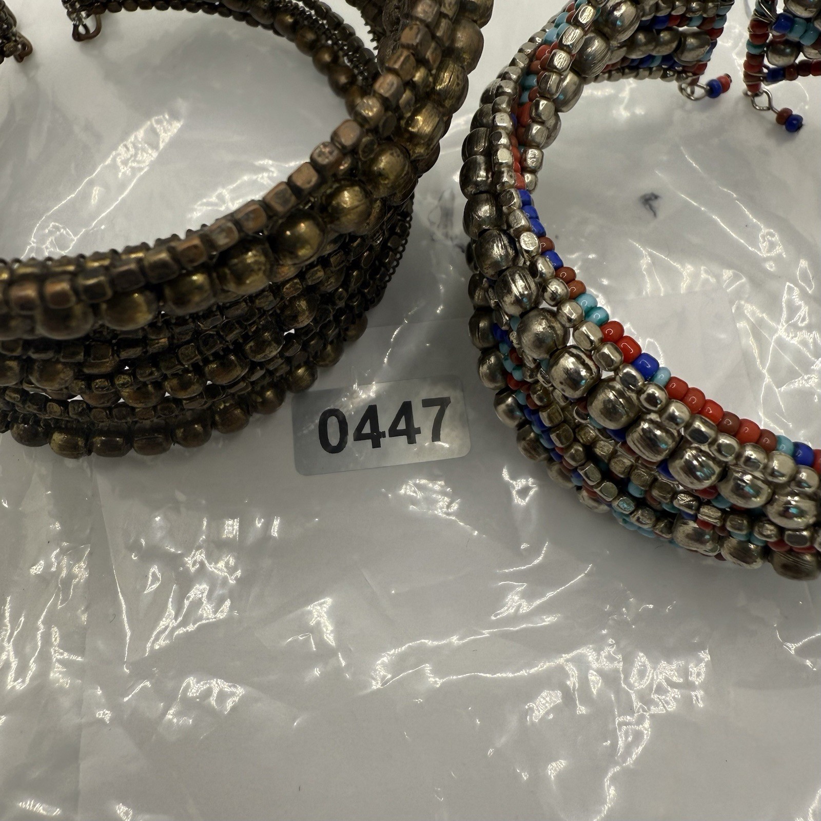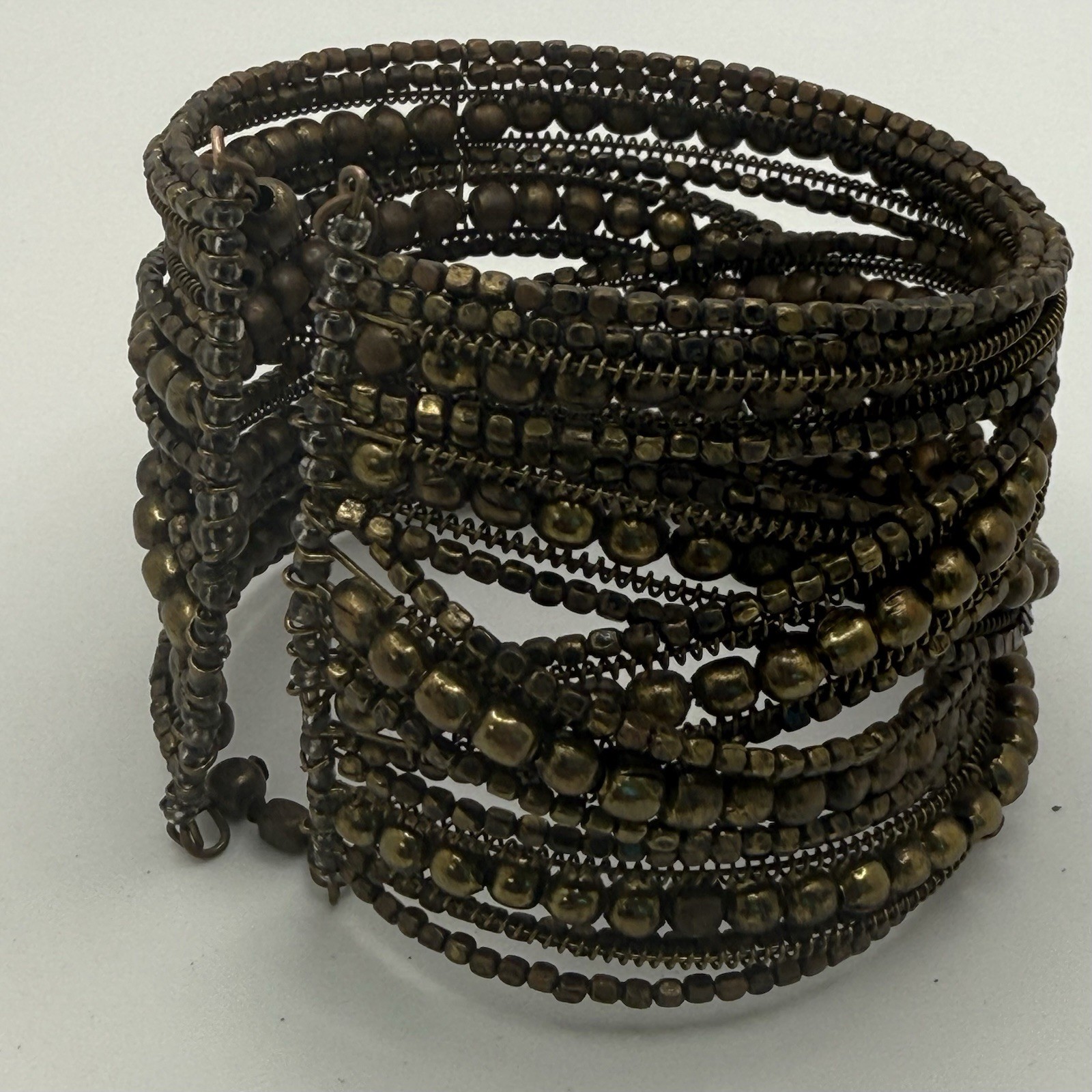 Two Beaded Wrap Bracelets Brown Red Blue Boho Cuff Adjustable 7.5