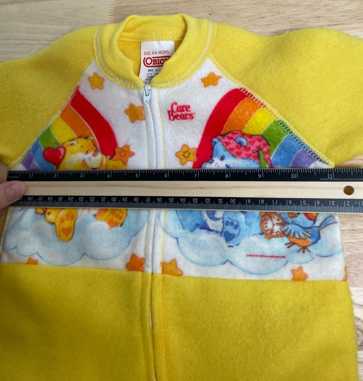 Obion Care Bears Vintage 1980's 1 Piece Footed Pajamas Yellow Baby Sz 0-6 Months
