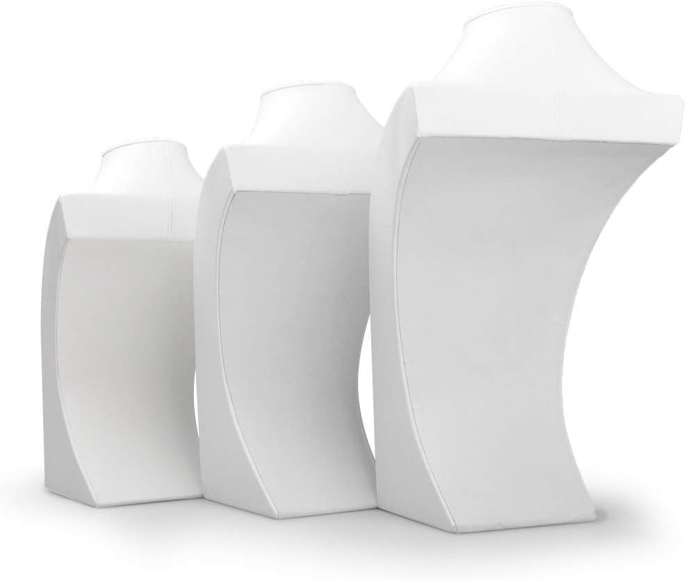 White Leather Jewelry Bust Necklace Display Stand Trade Show Jewelry Holder H...