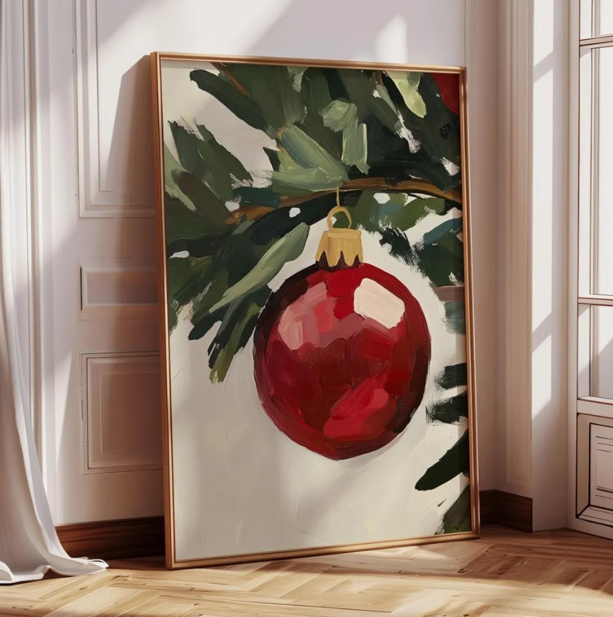 • Christmas Ornament Poster Art, Holiday Wall Decor, Festive Home Decoration