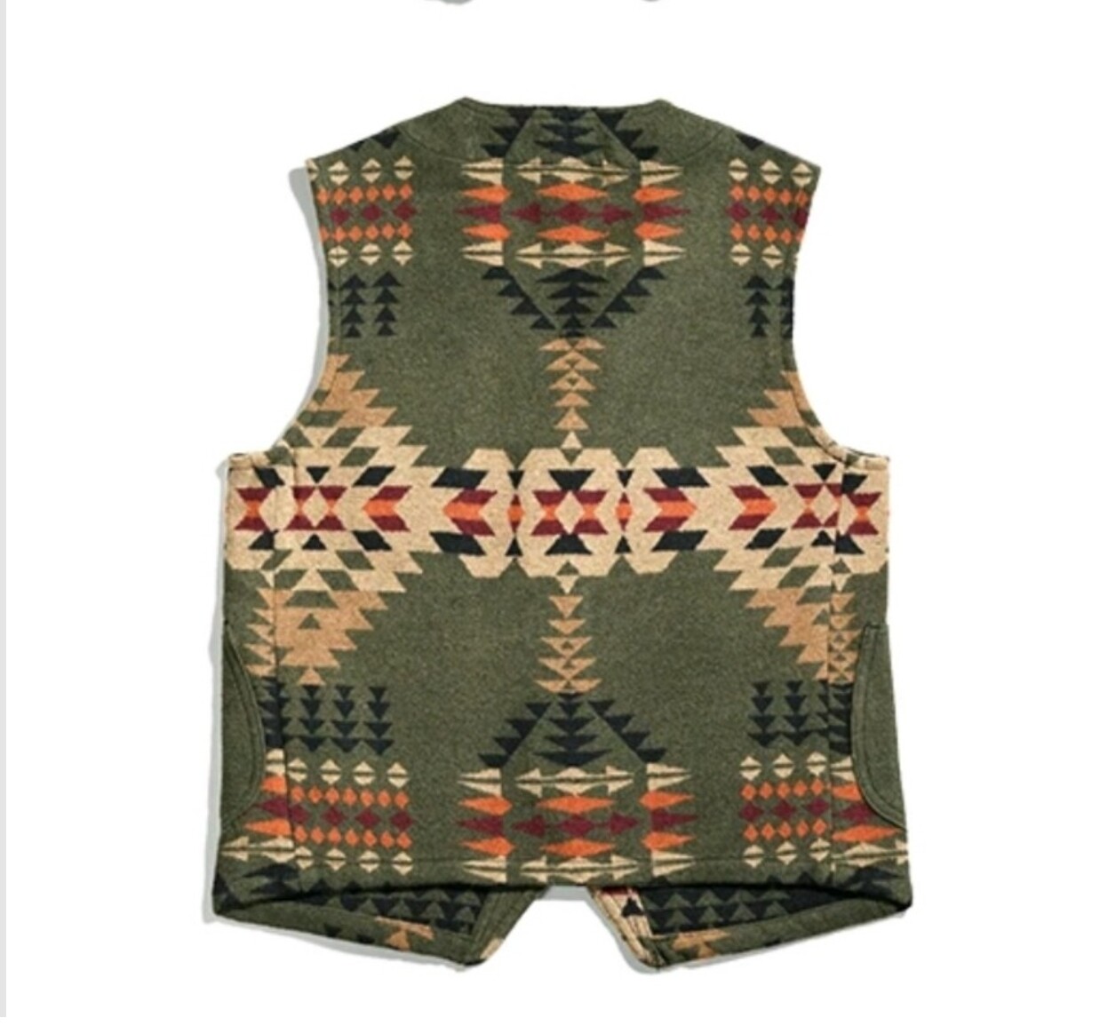 как выглядит Tribal Aztec Native American Southwest Chimayo Wool Polyester Button Up Vest фото