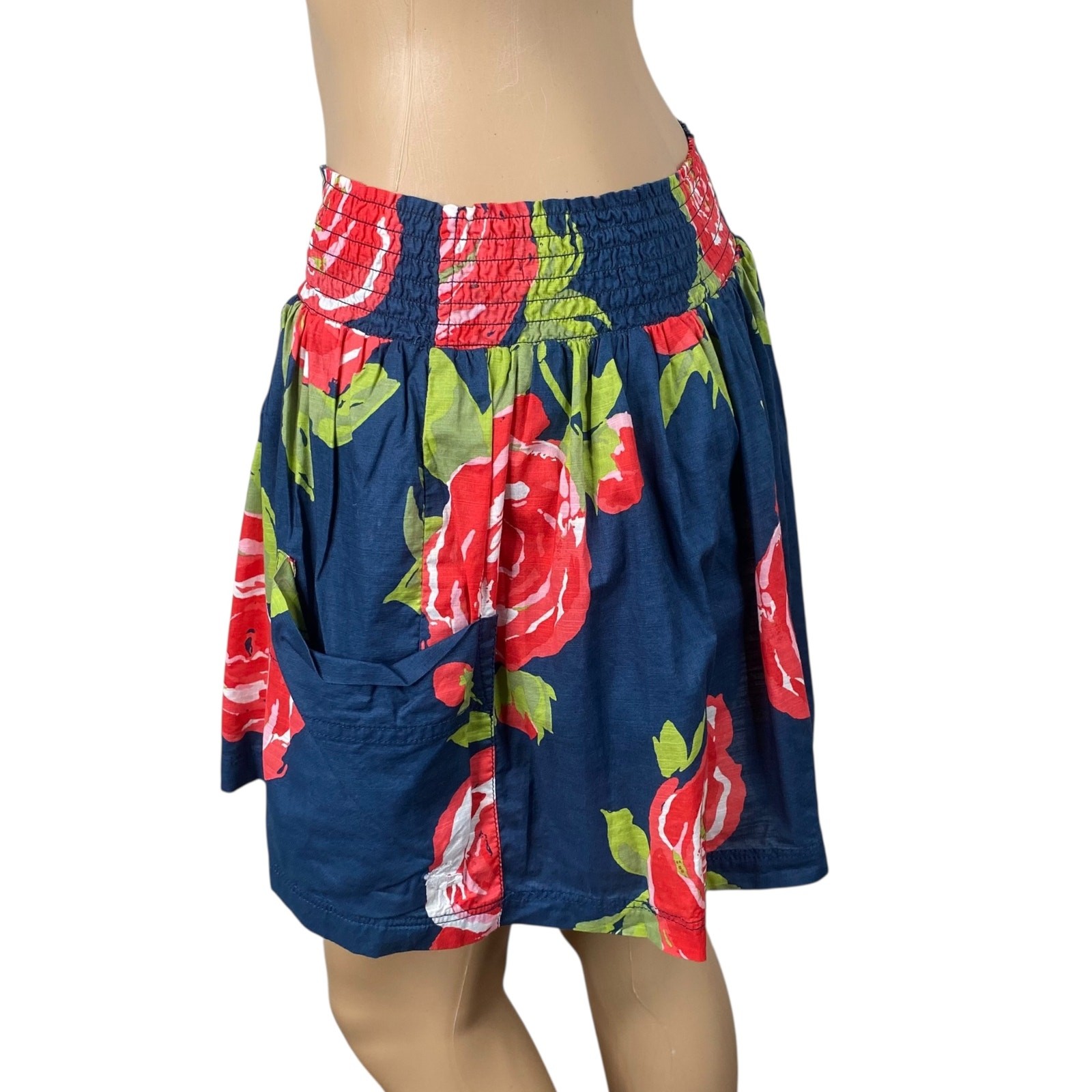 Vtg Y2K Abercrombie Fitch Floral Micro Mini Skirt S Smocked Cotton Rose