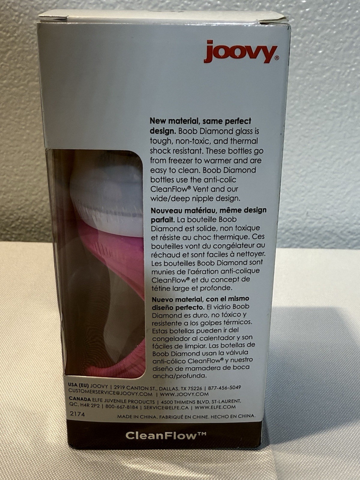 как выглядит Joovy Boob Diamond Glass Baby Bottle 5oz/150ml 0M Single Hole Nipple Pink фото