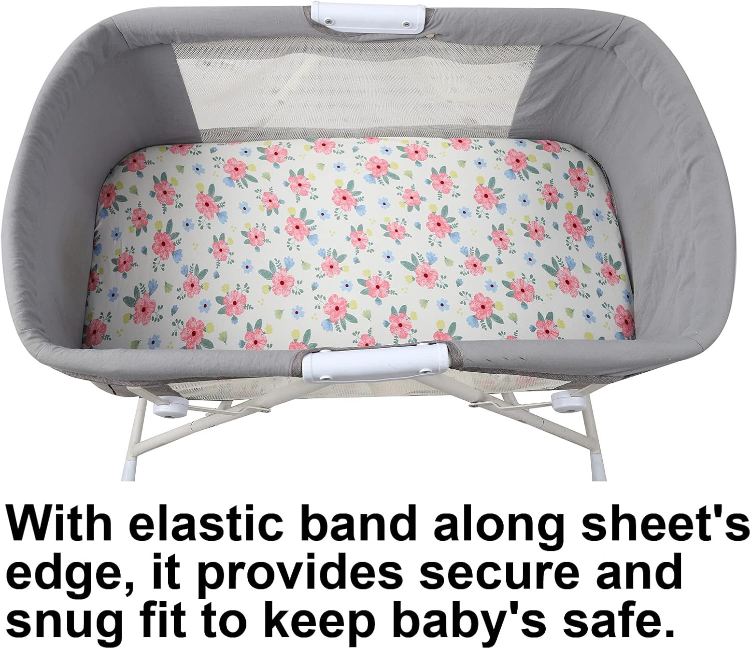 Bassinet Sheets Set 3 Pack for Baby Girl, Stretchy Soft Jersey Knitted Fitted Sh