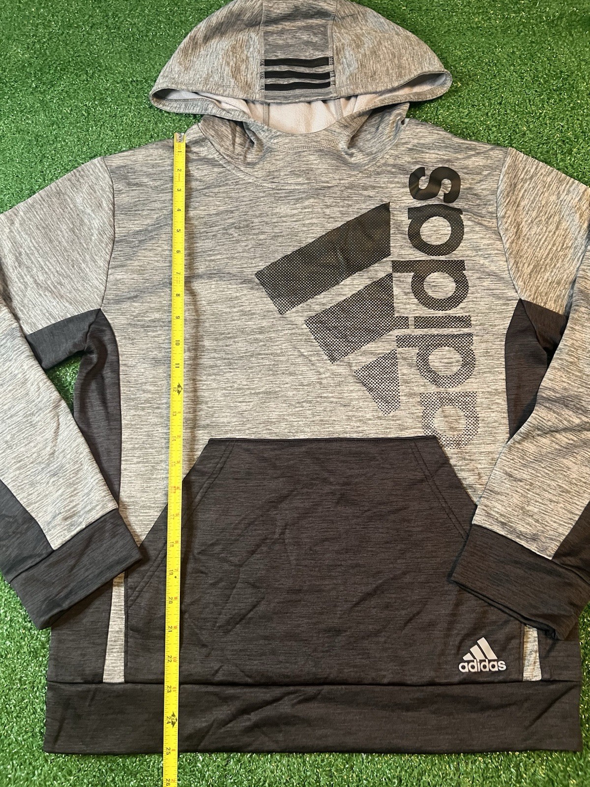 Adidas Colorblock Melange Hooded Pullover, Gray/Charcoal Kids Large 14-16 NWT