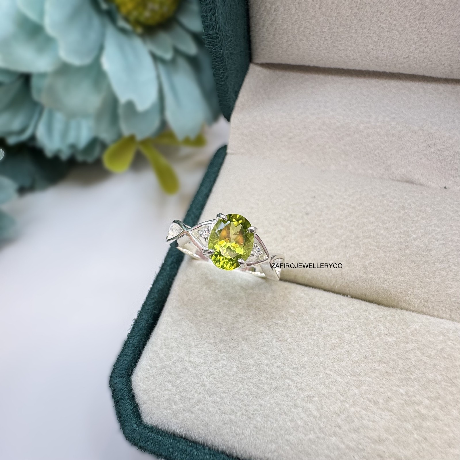 Natural Peridot Ring, August Birthstone, Birthstone Ring, 925 Sterling Silver