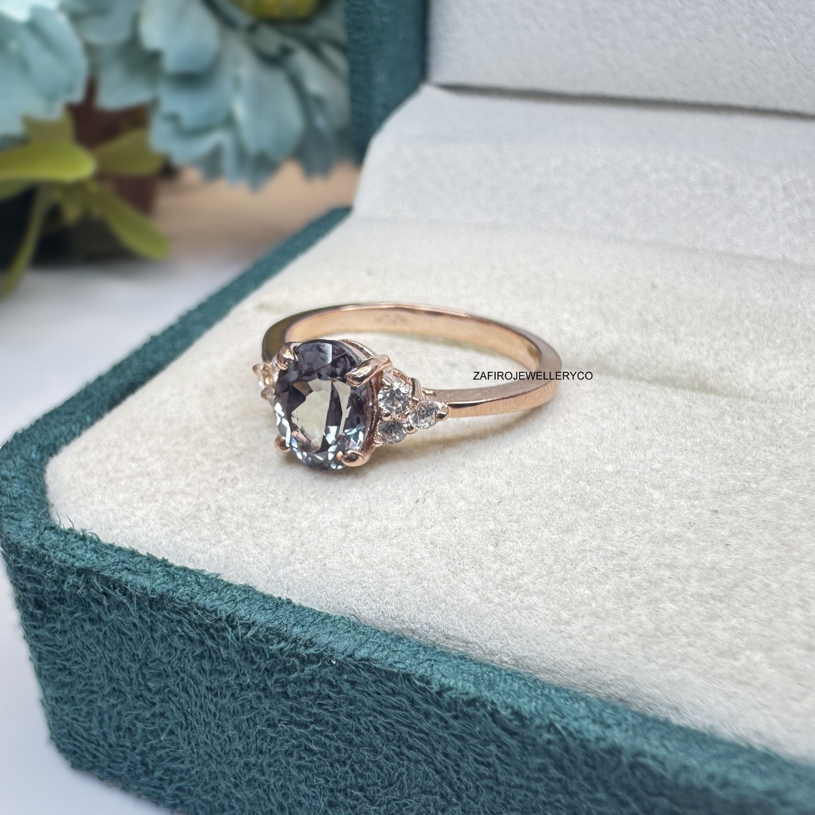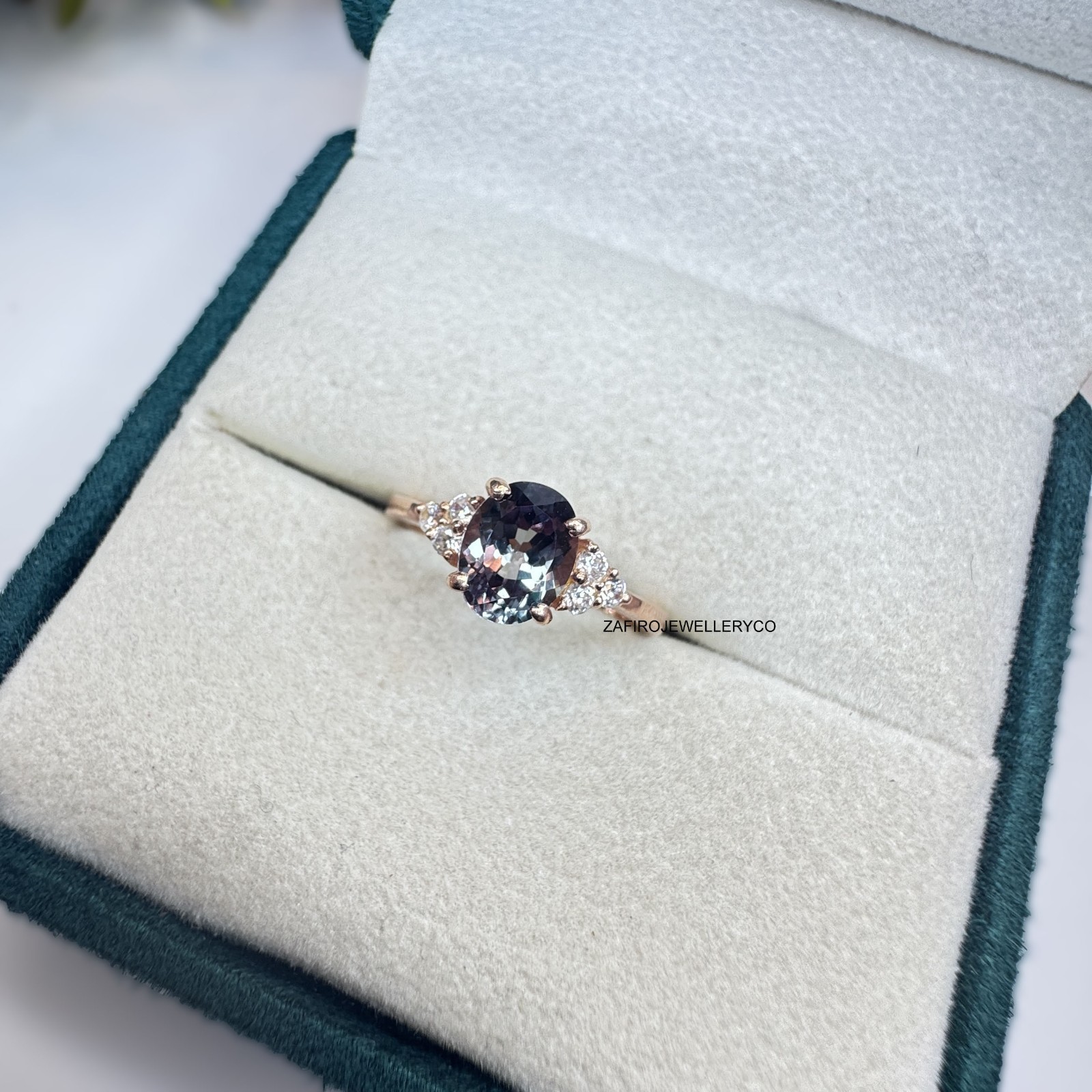 как выглядит Alexandrite Ring, June Birthstone, Three Stone Ring, 925 Sterling Silver фото
