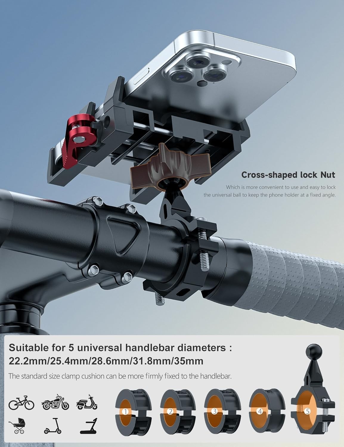 Luxury Aluminum Bike Phone Mount - 2024 Upgrade, 360 Rotation for 4.5-7 Phones