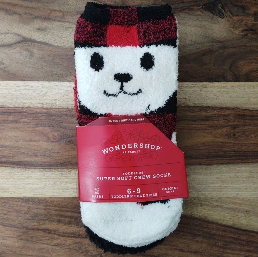 Wondershop Toddler Super Soft Crew Socks Size 6-9 Buffalo Plaid Red Black