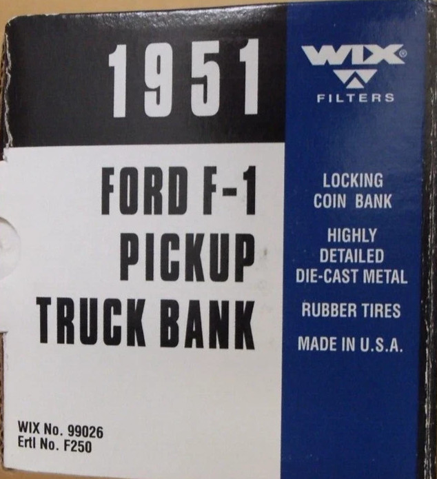WIX FILTERS 1951 FORD F-1 PICK-UP TRUCK BLUE DIE CAST BANK ERTL 1:25 NEW NIB