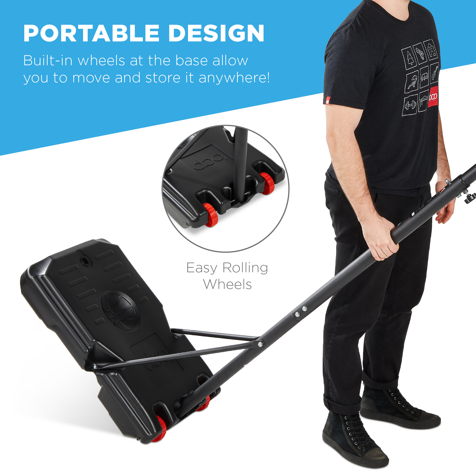 Kids Height-Adjustable Basketball Hoop, Portable Backboard System w/ Wheels
