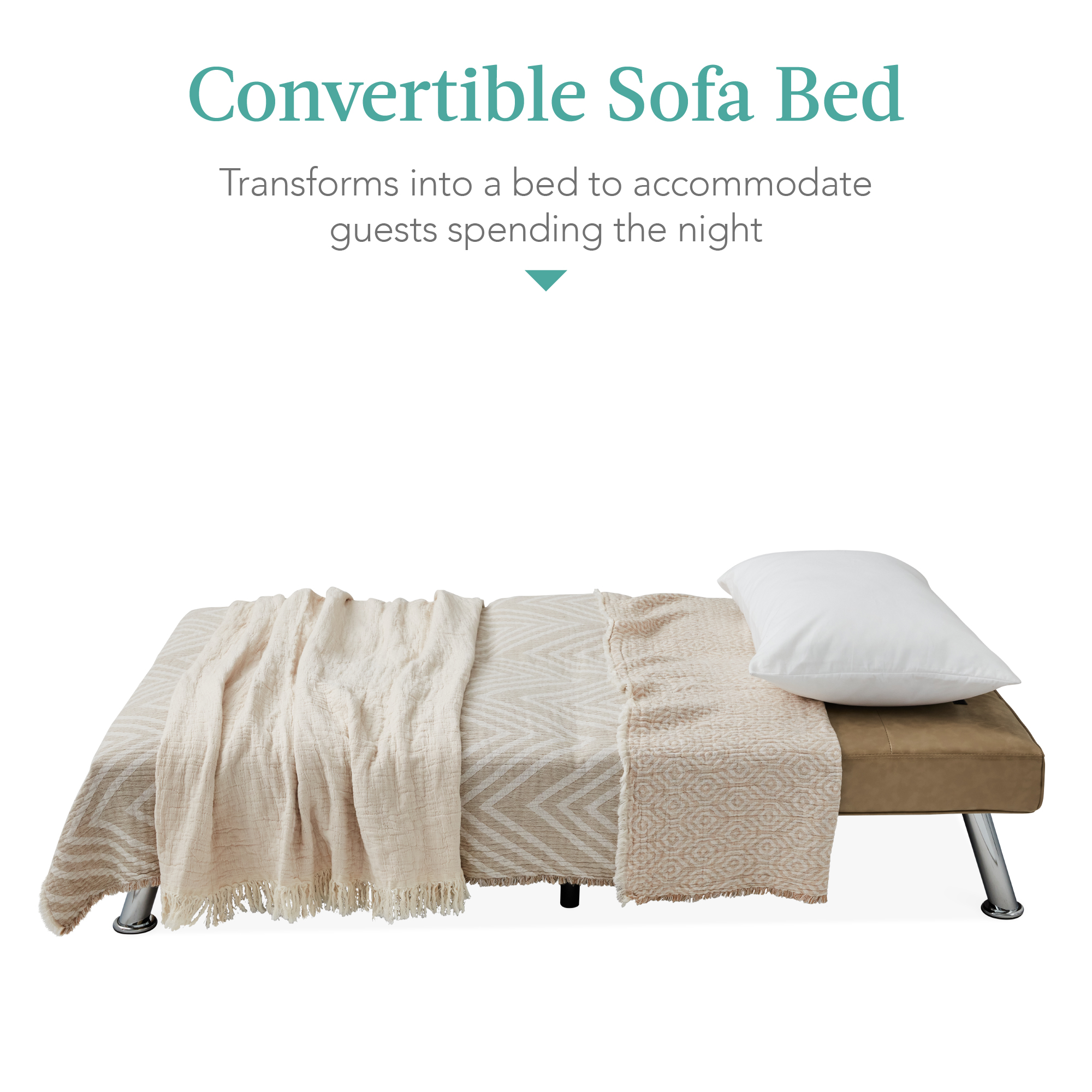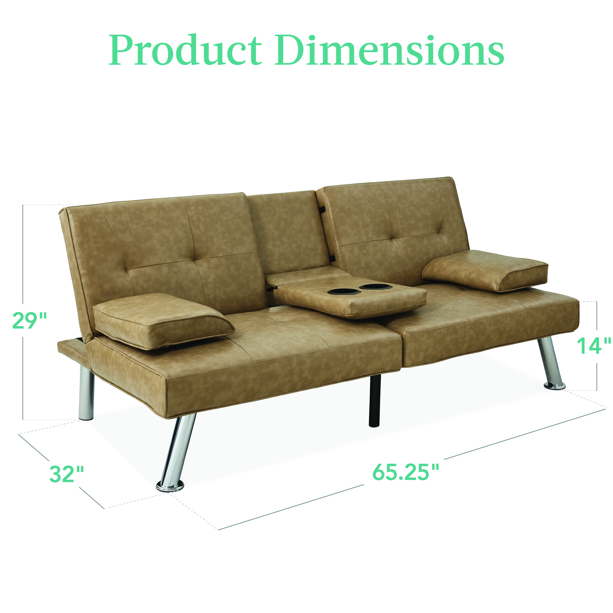 Faux Leather Upholstered Convertible Sofa Bed Futon w/ 2 Cupholders
