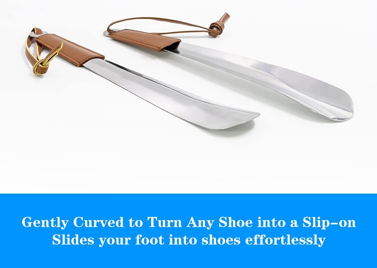 Charmount Metal Shoe Horn - 12 Inch Long Horns for Senior, Men, brown