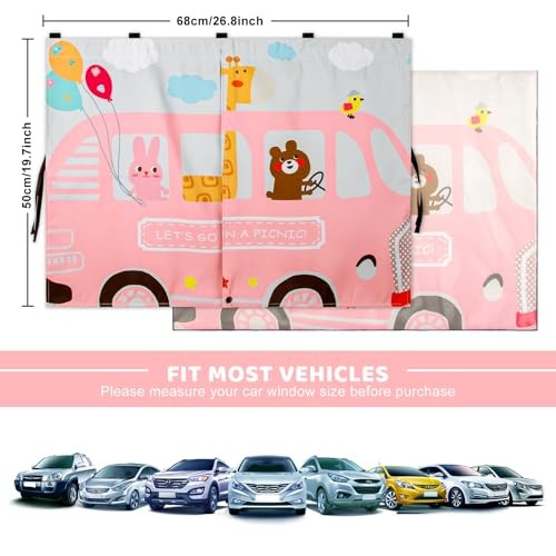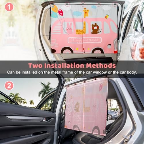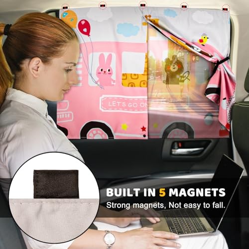 Car Window Shades, 2pcs Magnetic Car Curtains for Side Windows Pink and White