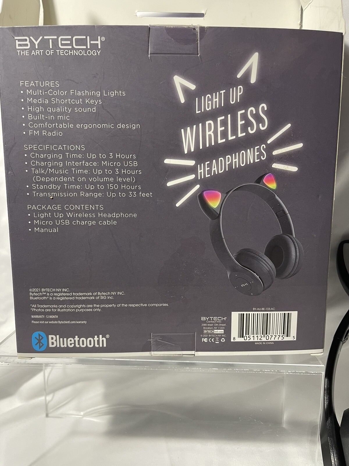 ByTech Multi Color Light Up Wireless Cat Headphones - no AUX cord