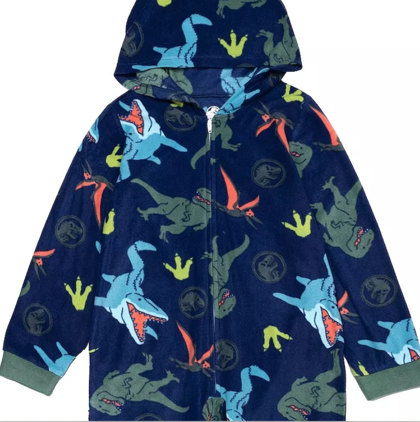 как выглядит Jurassic World Boys Carnivore Dinosaurs Print Microfleece Hooded Pajama Sleeper фото