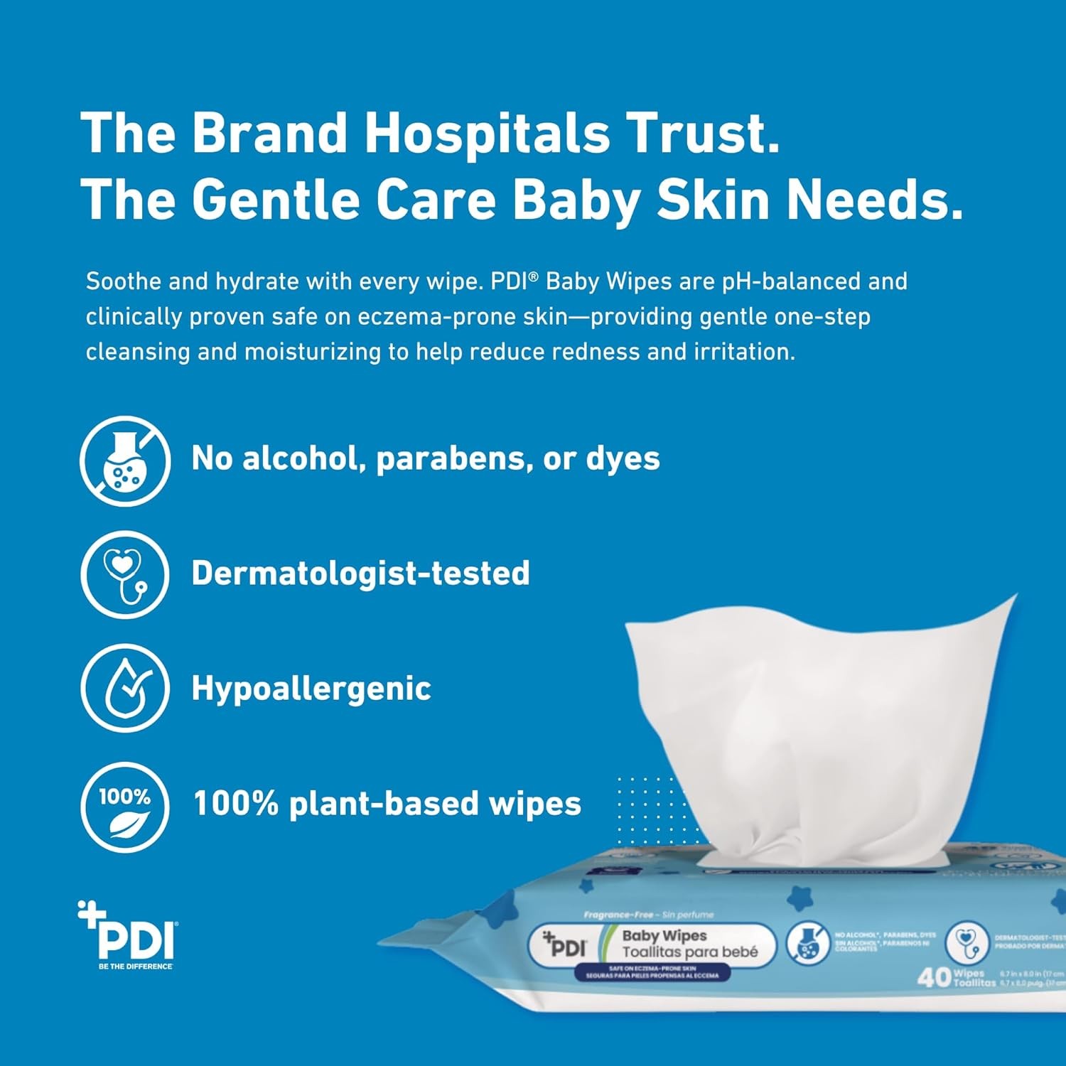 Plant-Based Baby Wipes, 40 Pack, Perfect for Sensitive Skin and Eczema