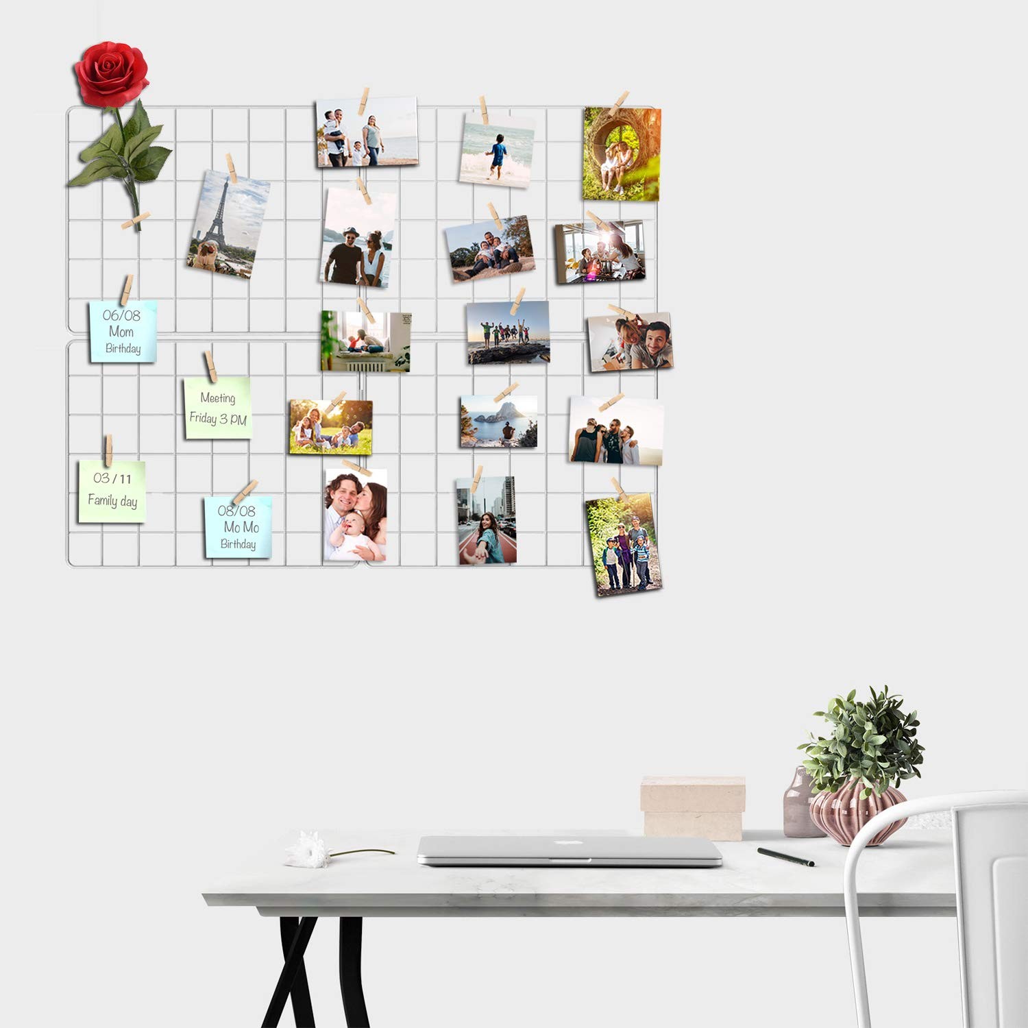 Wire Wall Grid Panel for Photo Display, DIY White Iron Picture Frames Collage...